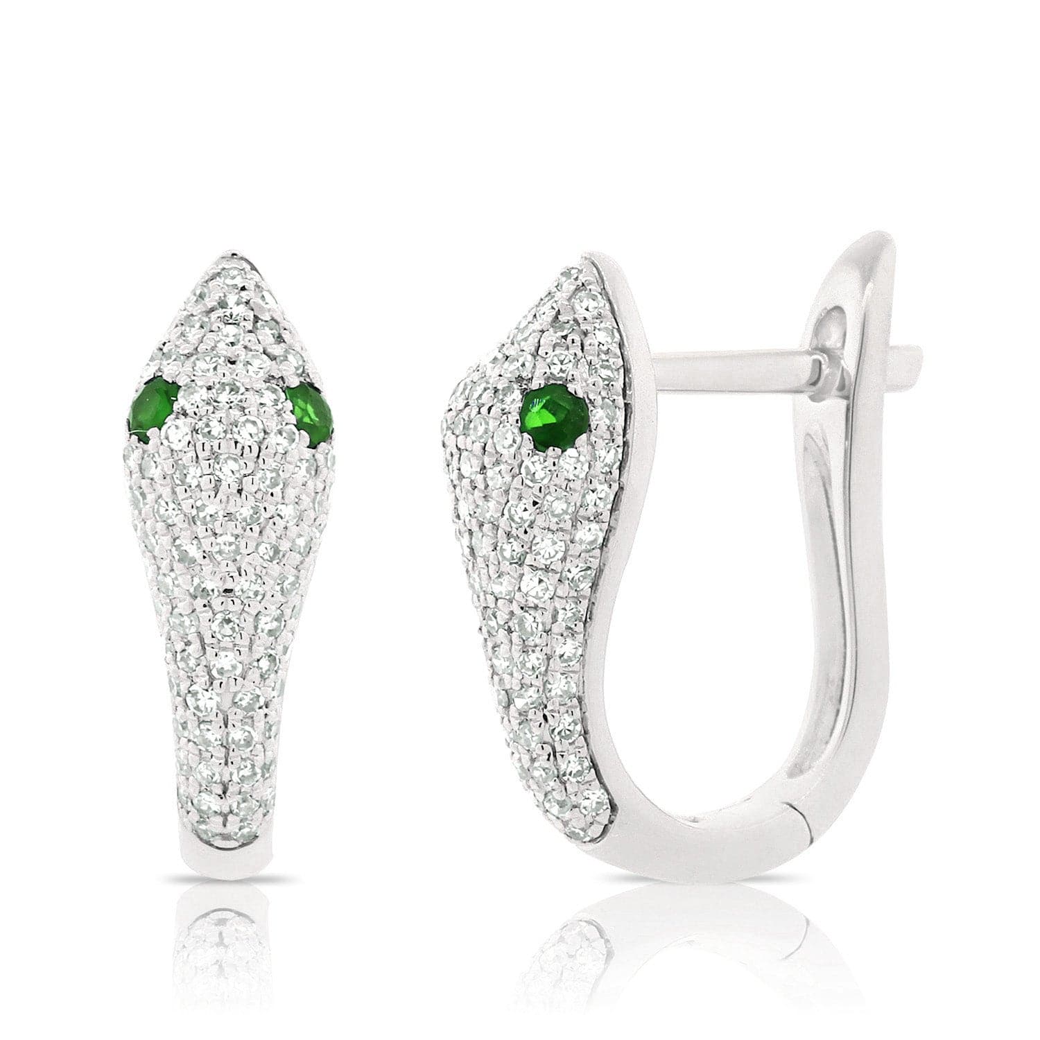 14k Gold Tsavorite & Diamond Snake Huggie Earrings