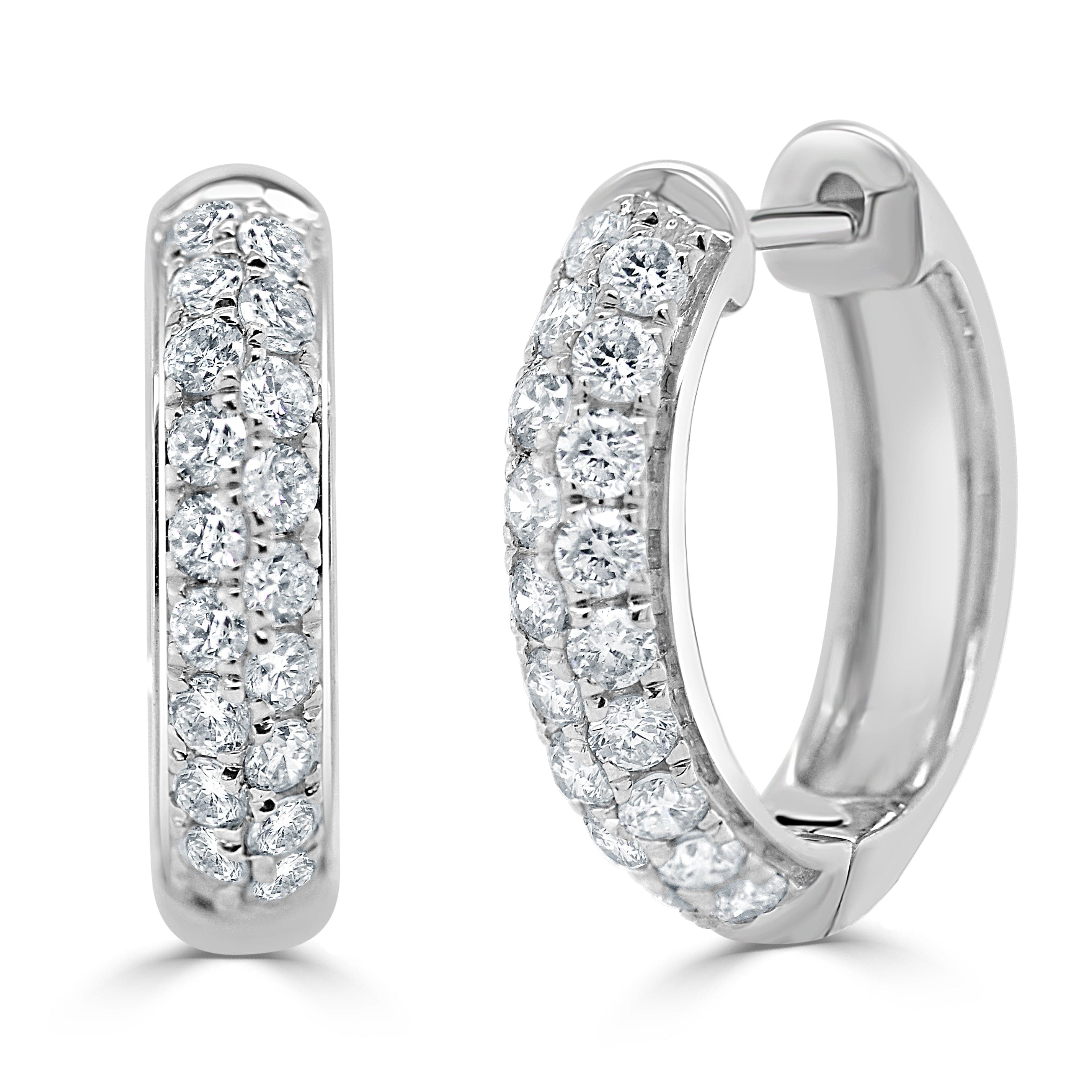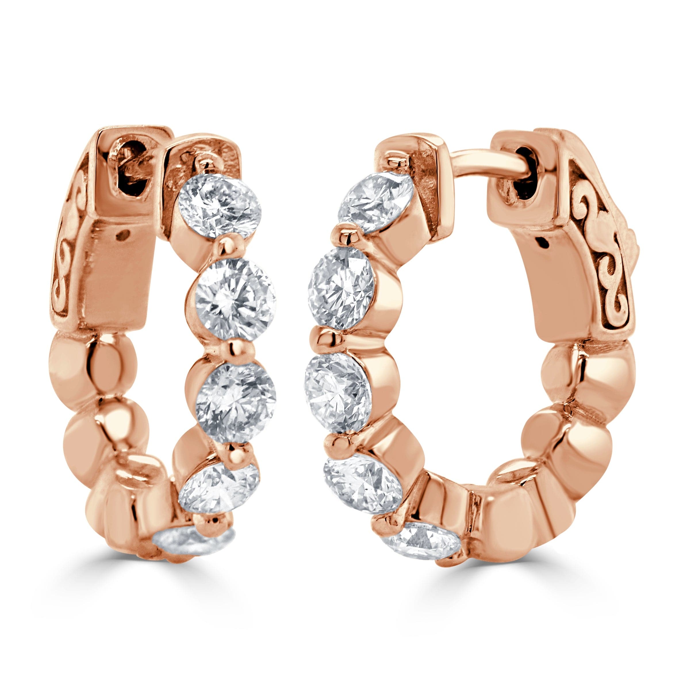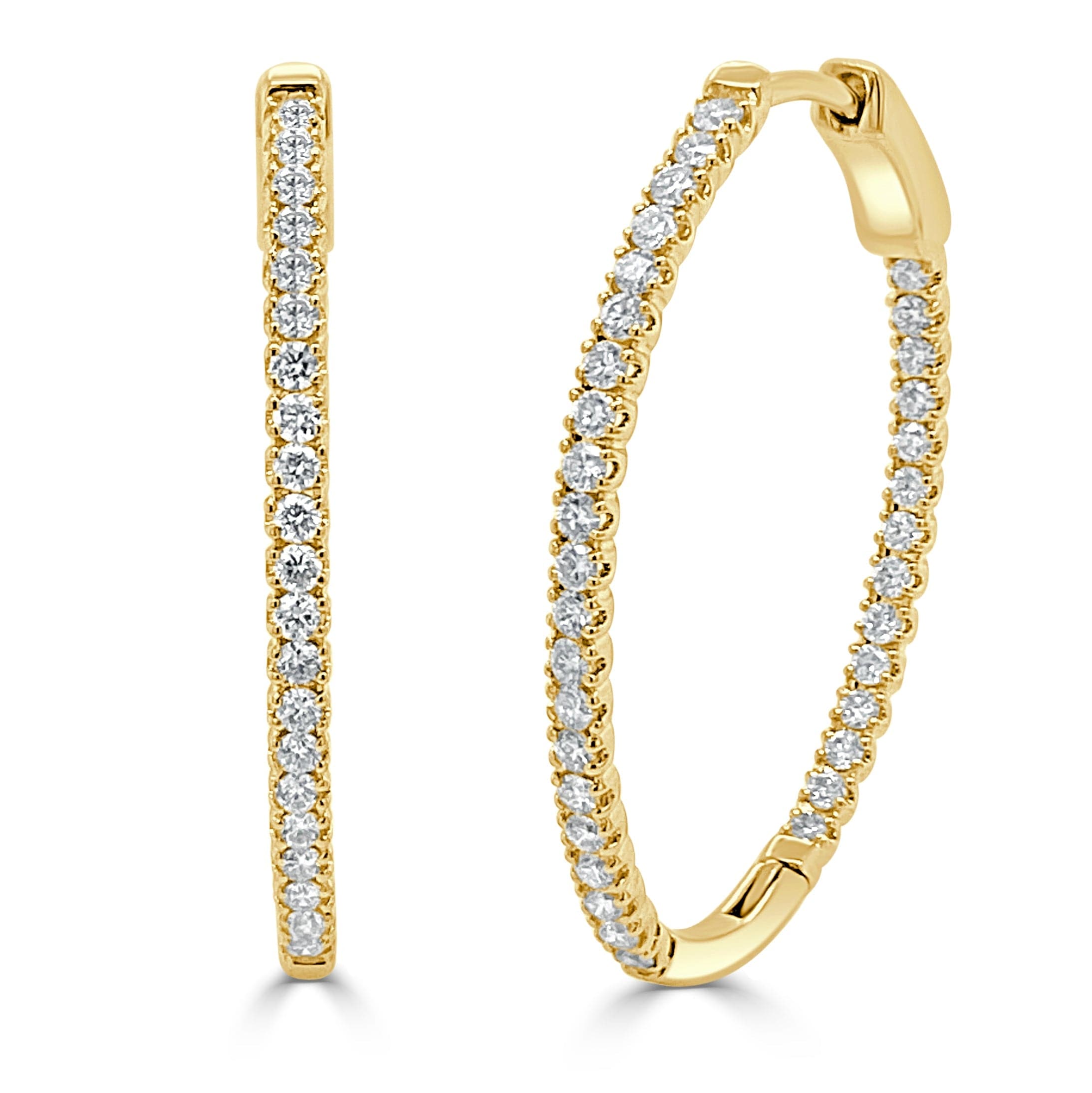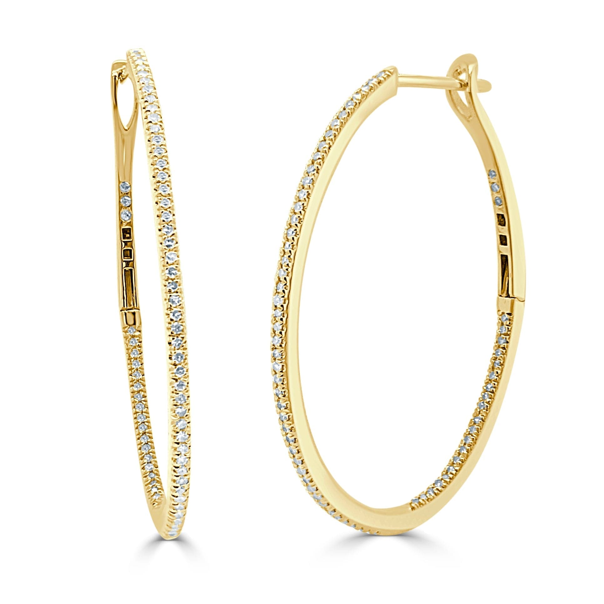 14k Gold & Diamond Skinny Hoop Earrings 2.25"