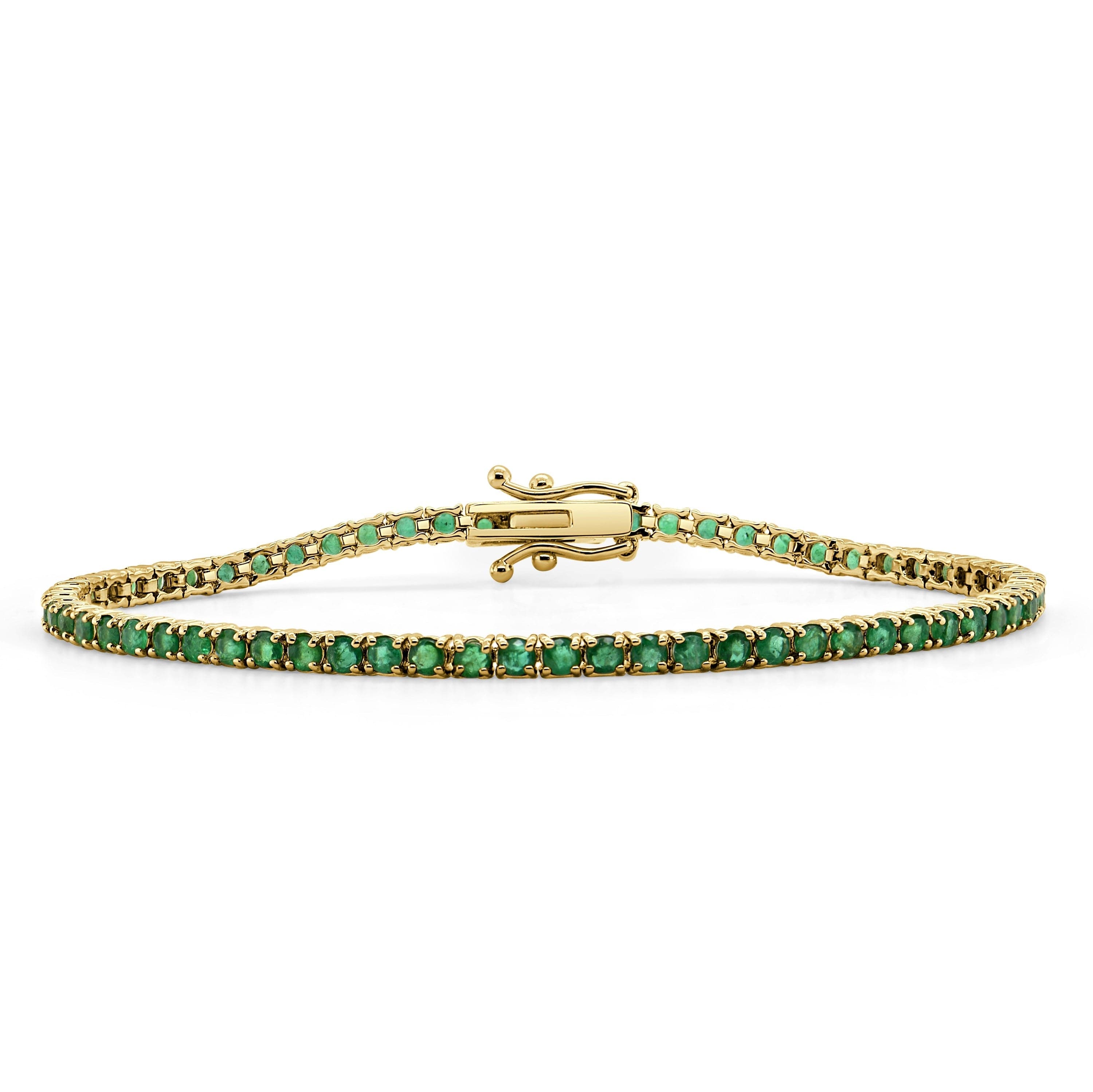 14k Gold Diamond & Green Emerald Tennis Bracelet