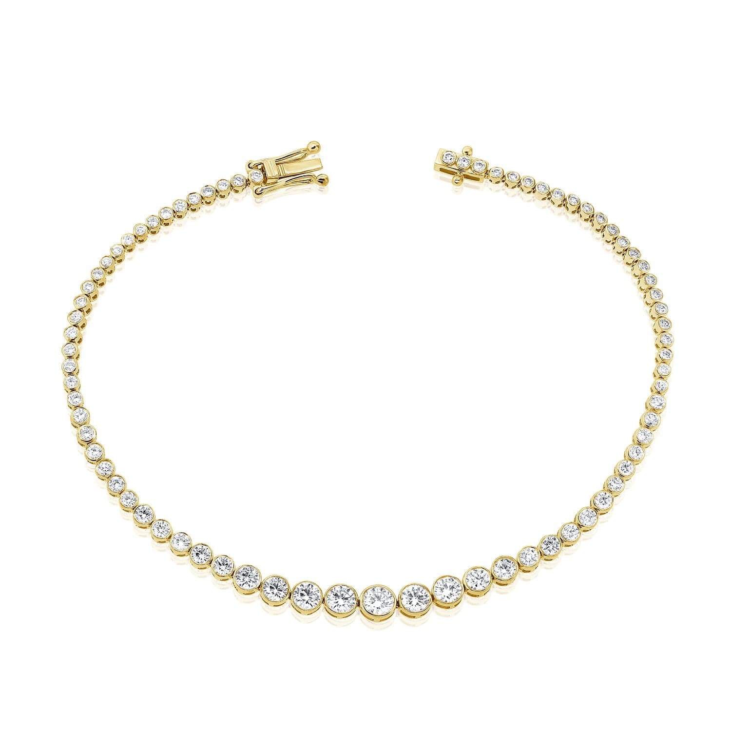 14k Gold Diamond Bezel-Set Tennis Bracelet