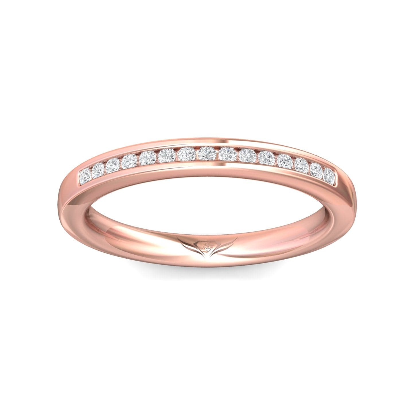 FlyerFit Channel/Shared Prong 14K Pink Gold Wedding Band
