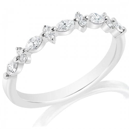 FlyerFit Channel/Shared Prong 14K White Gold Wedding Band