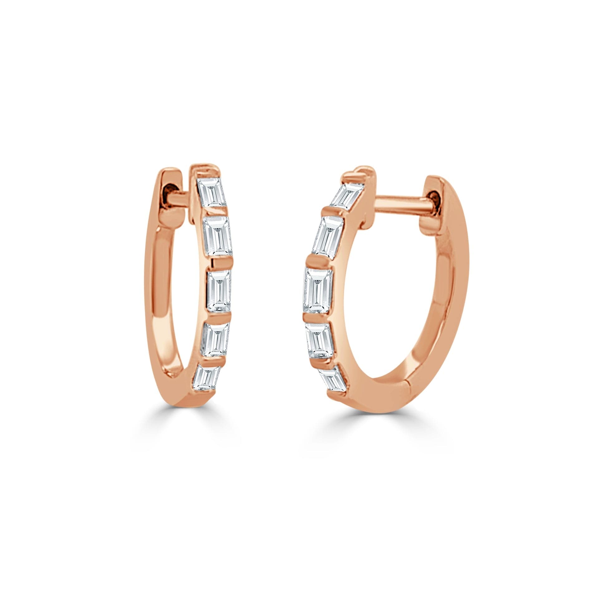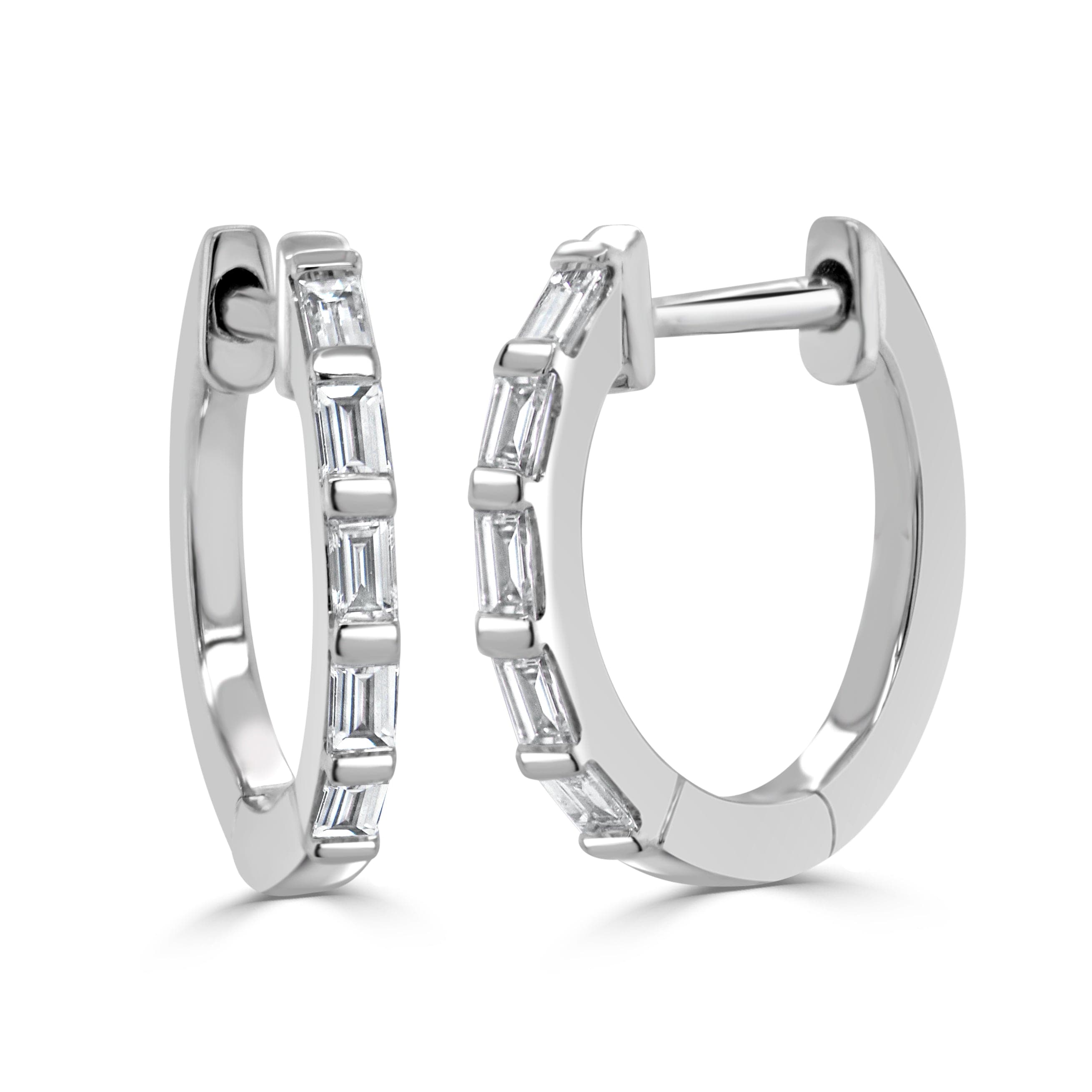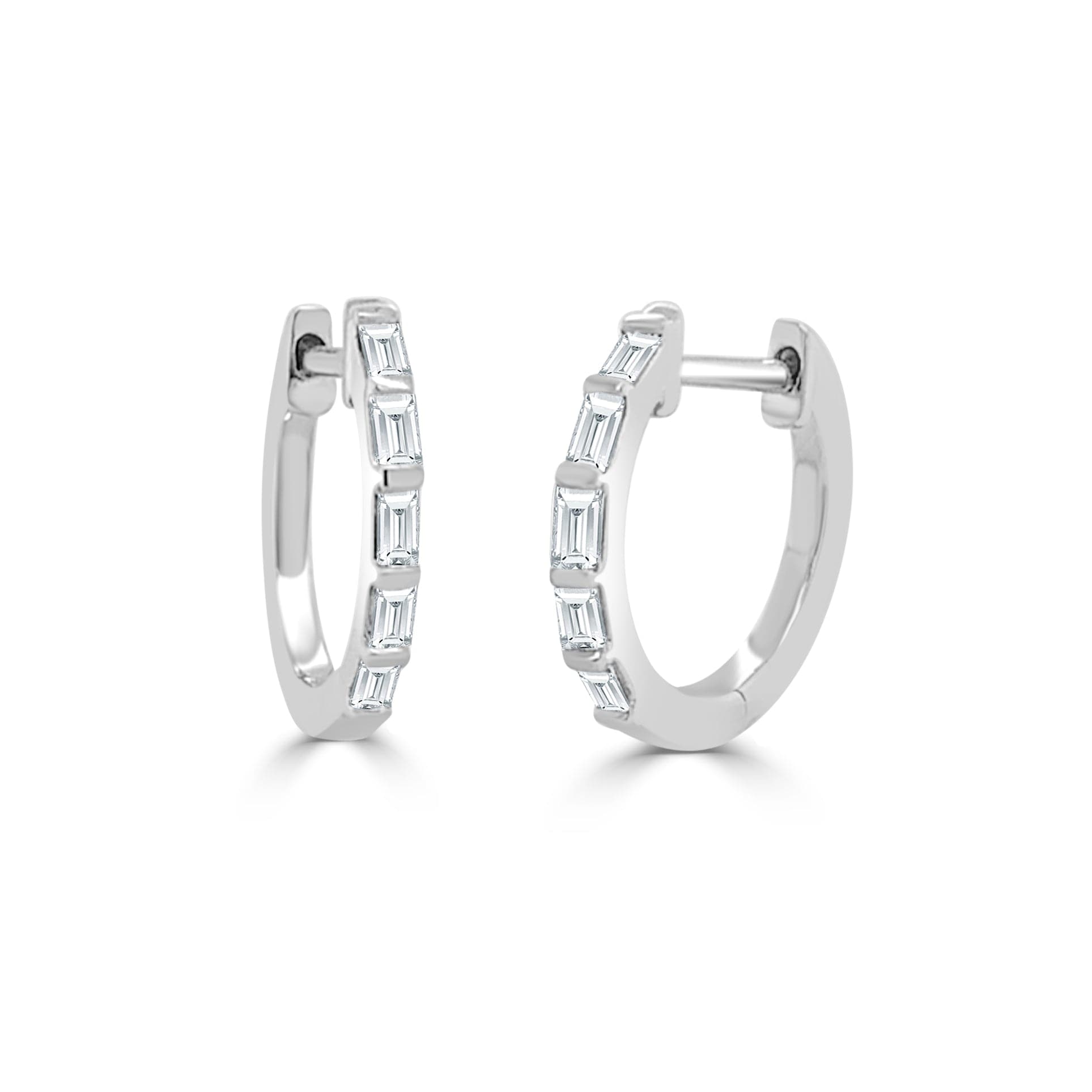 14K GOLD DIAMOND BAGUETTE HUGGIE EARRINGS
