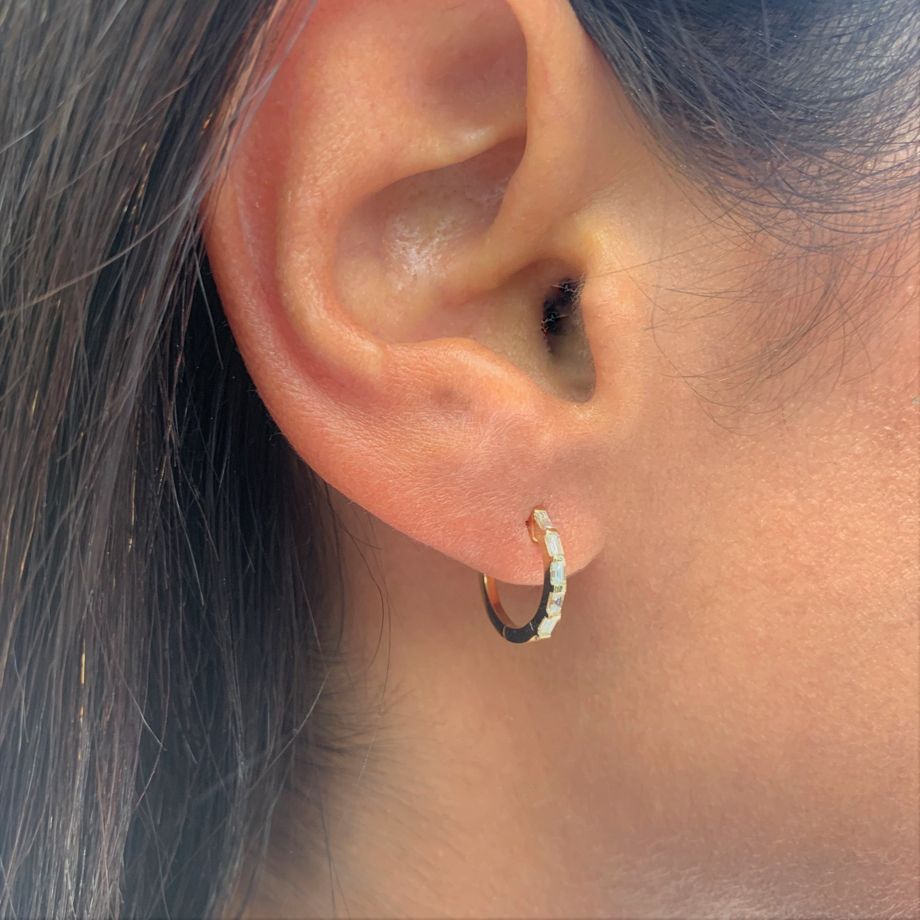 14k Gold & Baguette Diamond Huggie Earrings