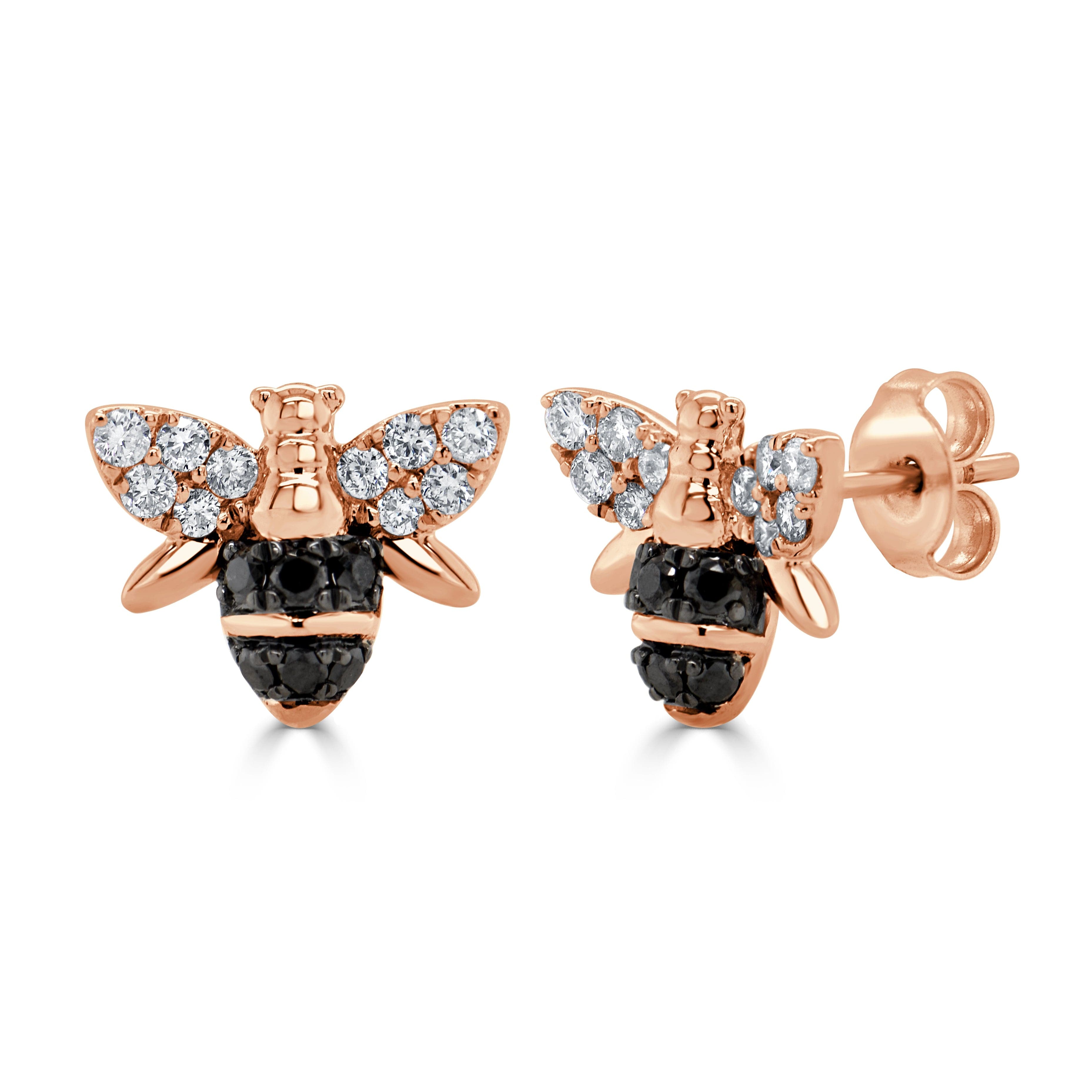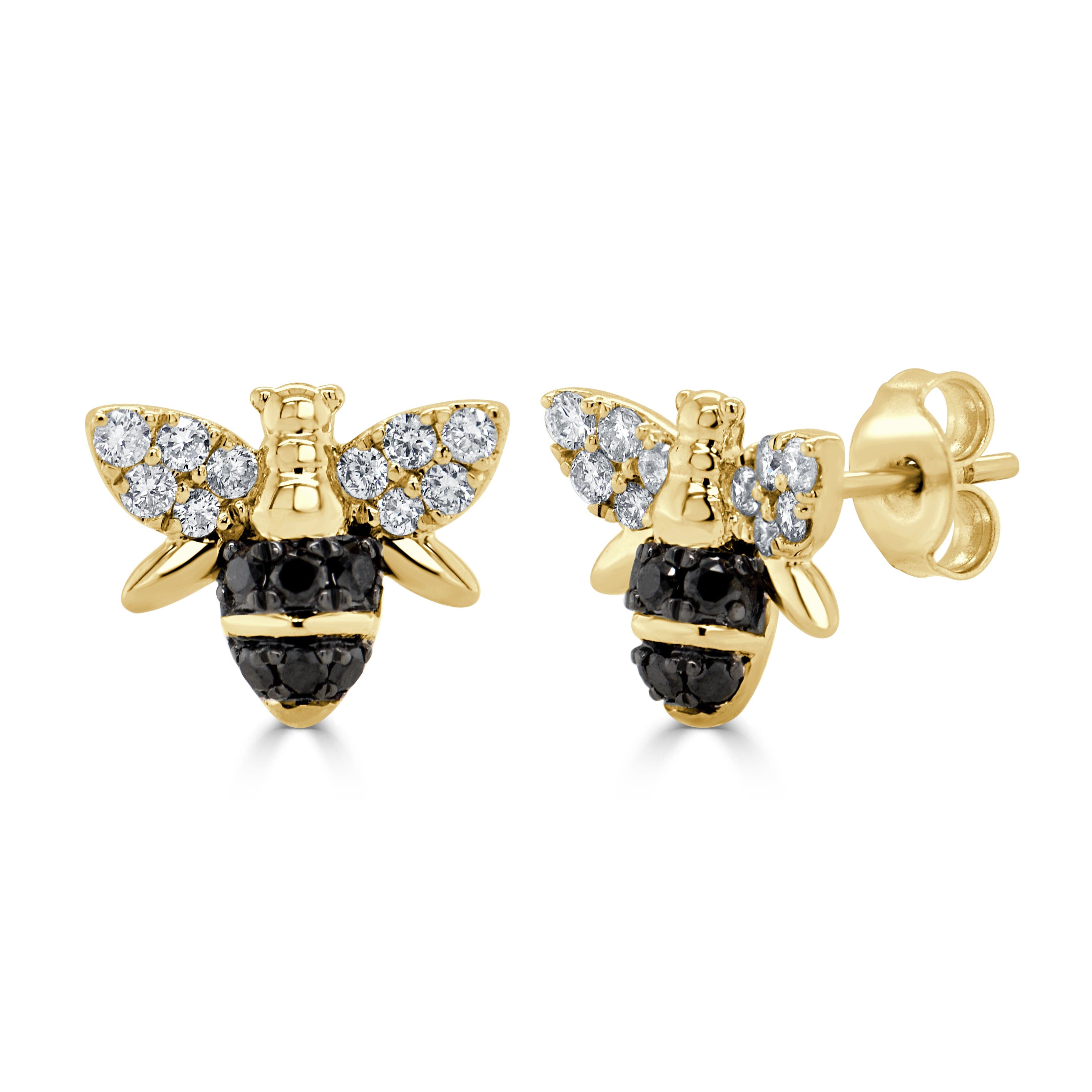 14K GOLD BLACK & WHITE DIAMOND BUMBLE BEE EARRING