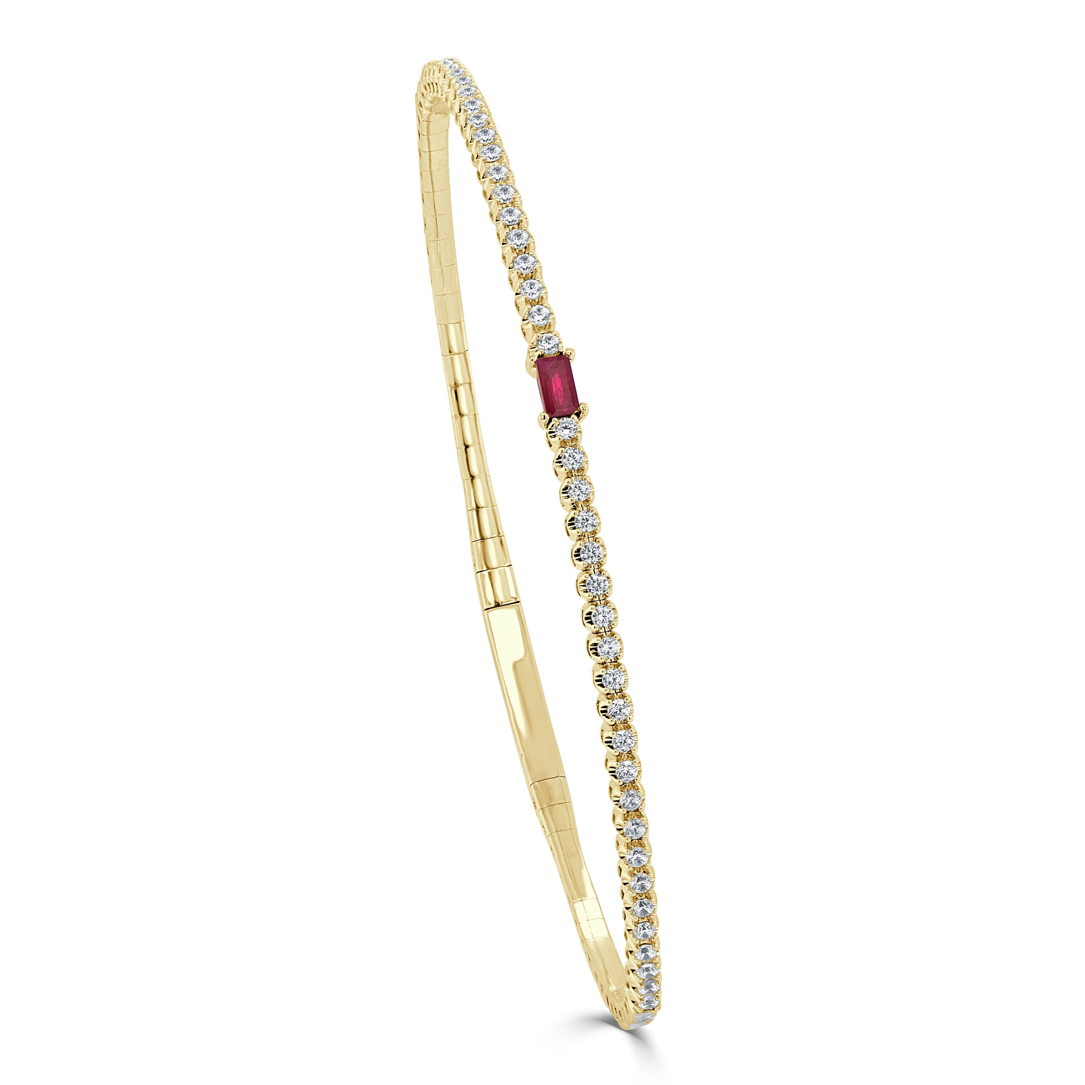14K GOLD BIRTHSTONE & DIAMOND FLEXIBLE BANGLE BRACELET