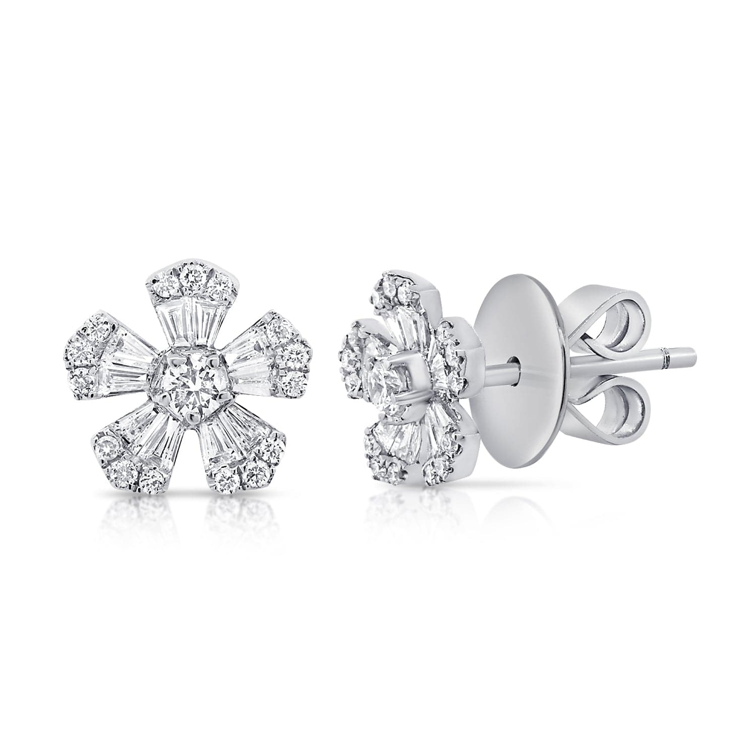 14k Gold & Diamond Baguette Flower Stud Earrings
