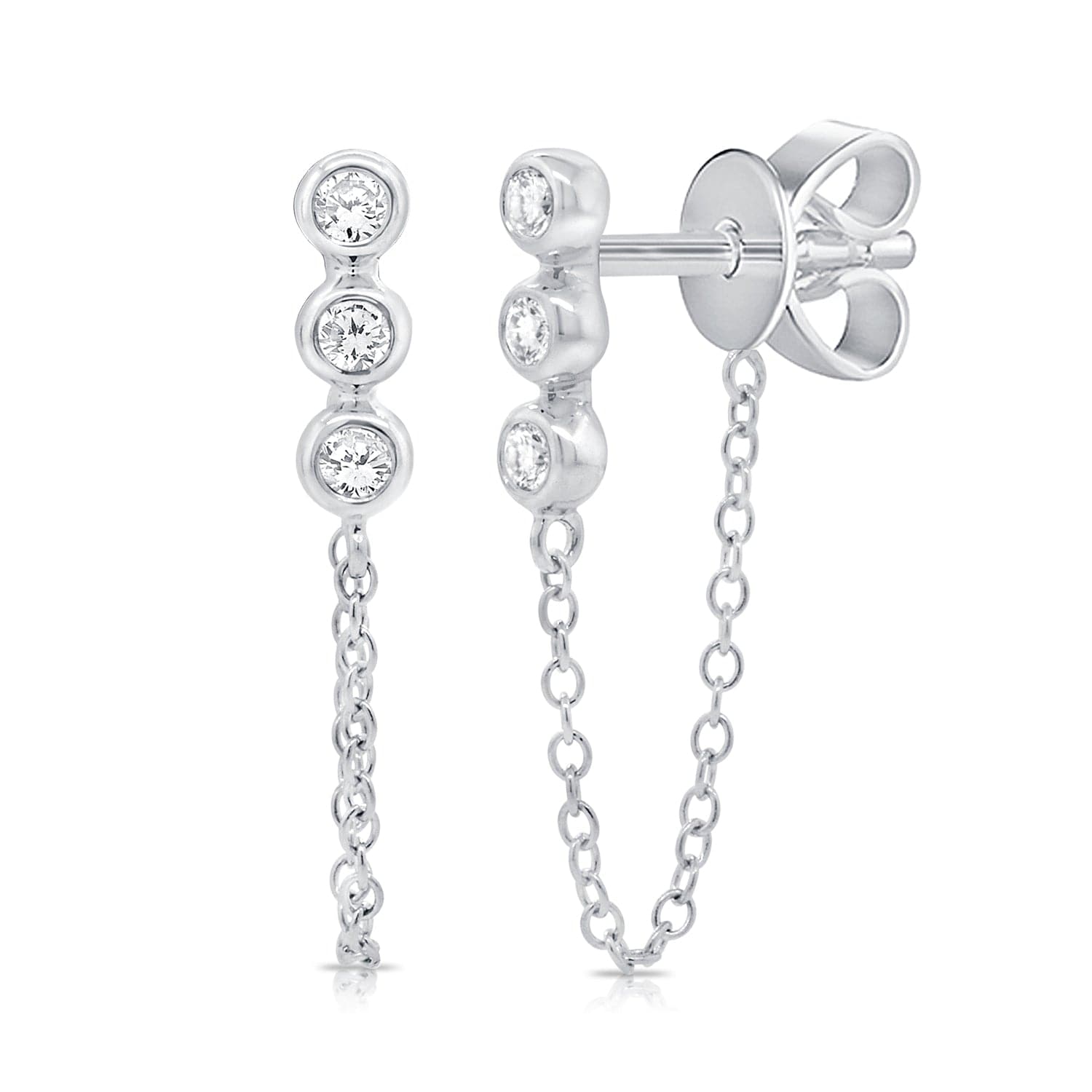 14K GOLD & DIAMOND CHAIN DANGLE STUD EARRINGS