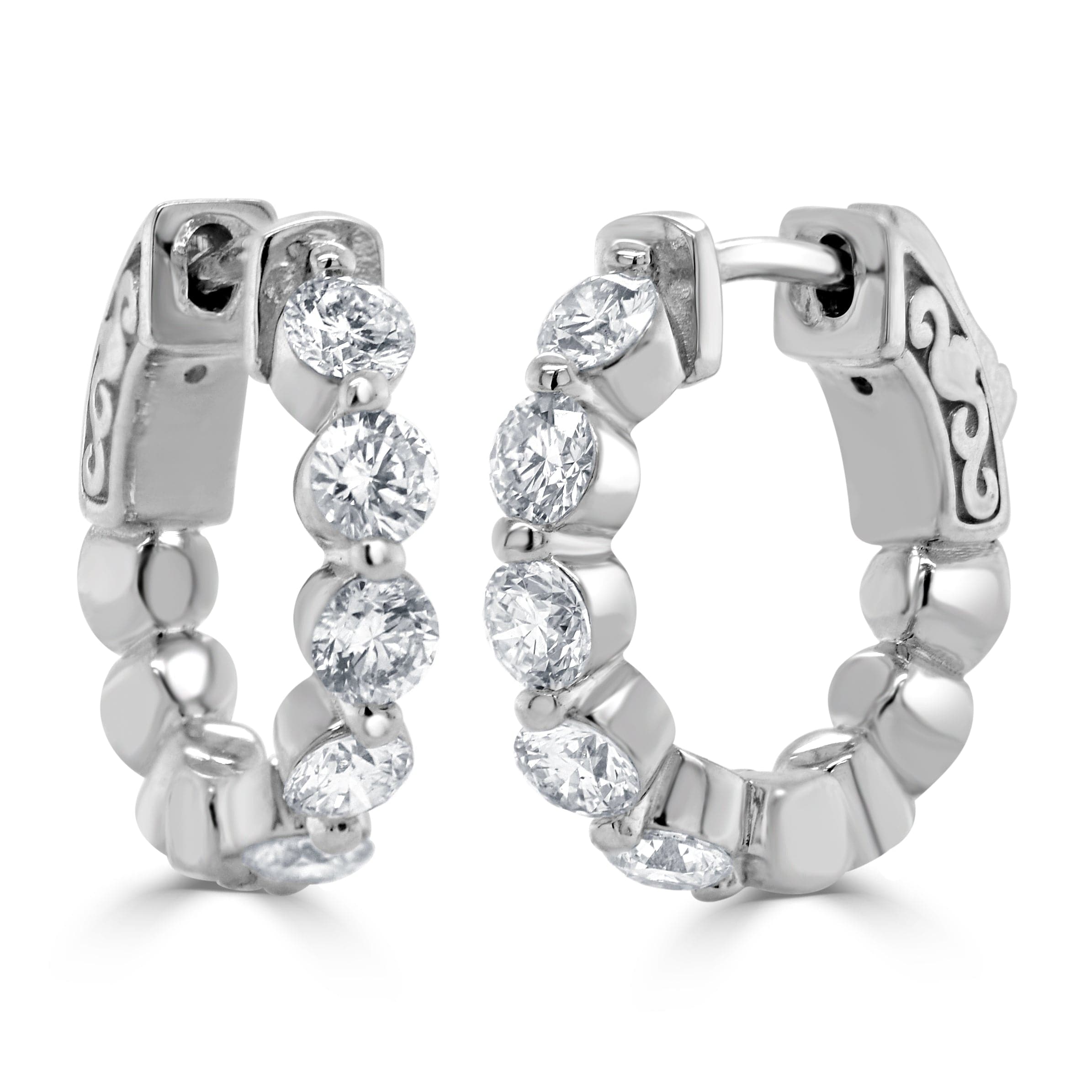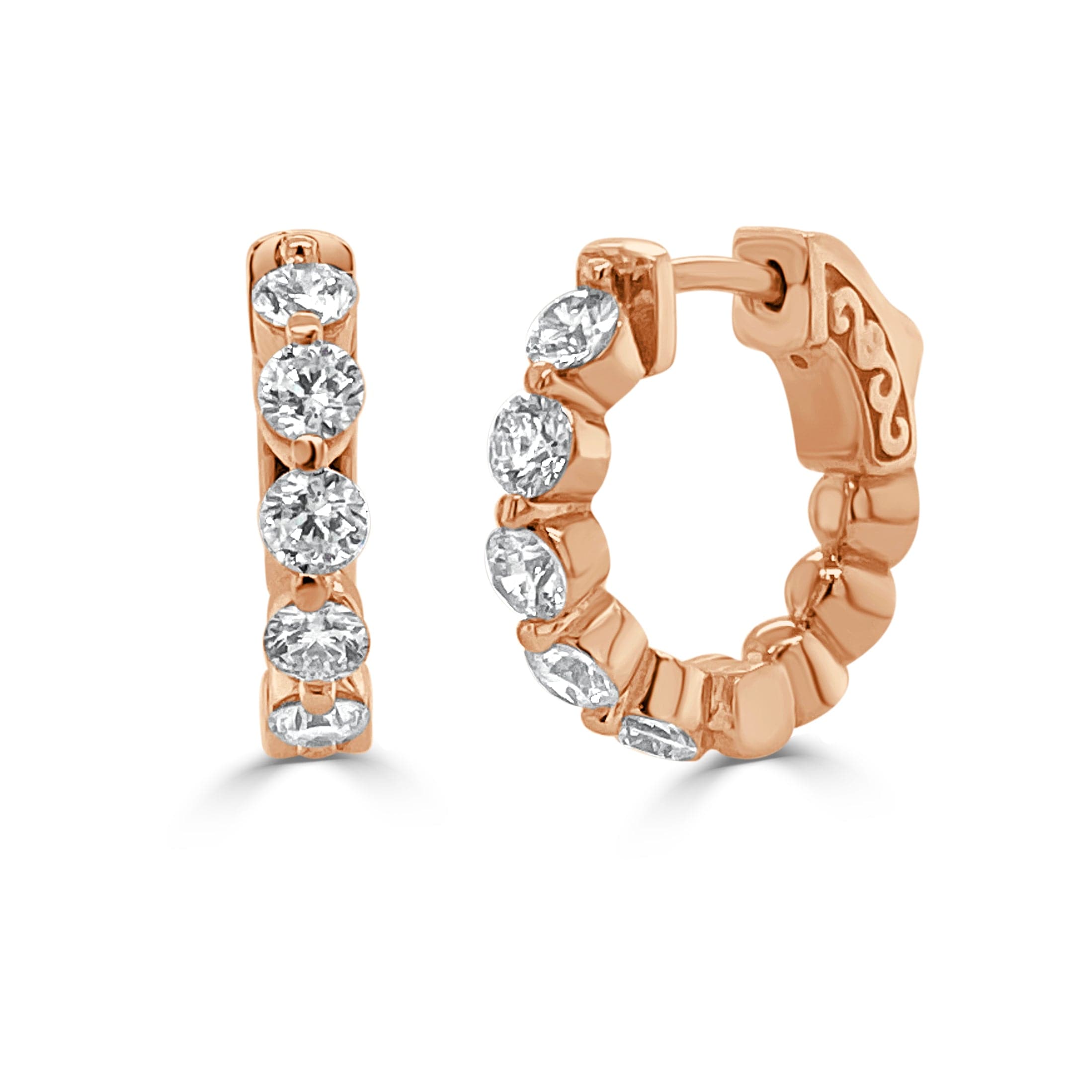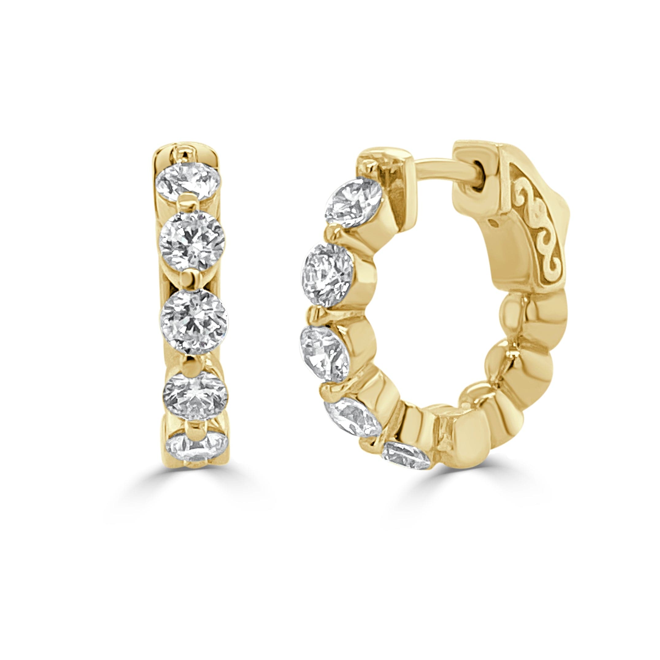 14K GOLD DIAMOND HUGGIE HOOP EARRINGS