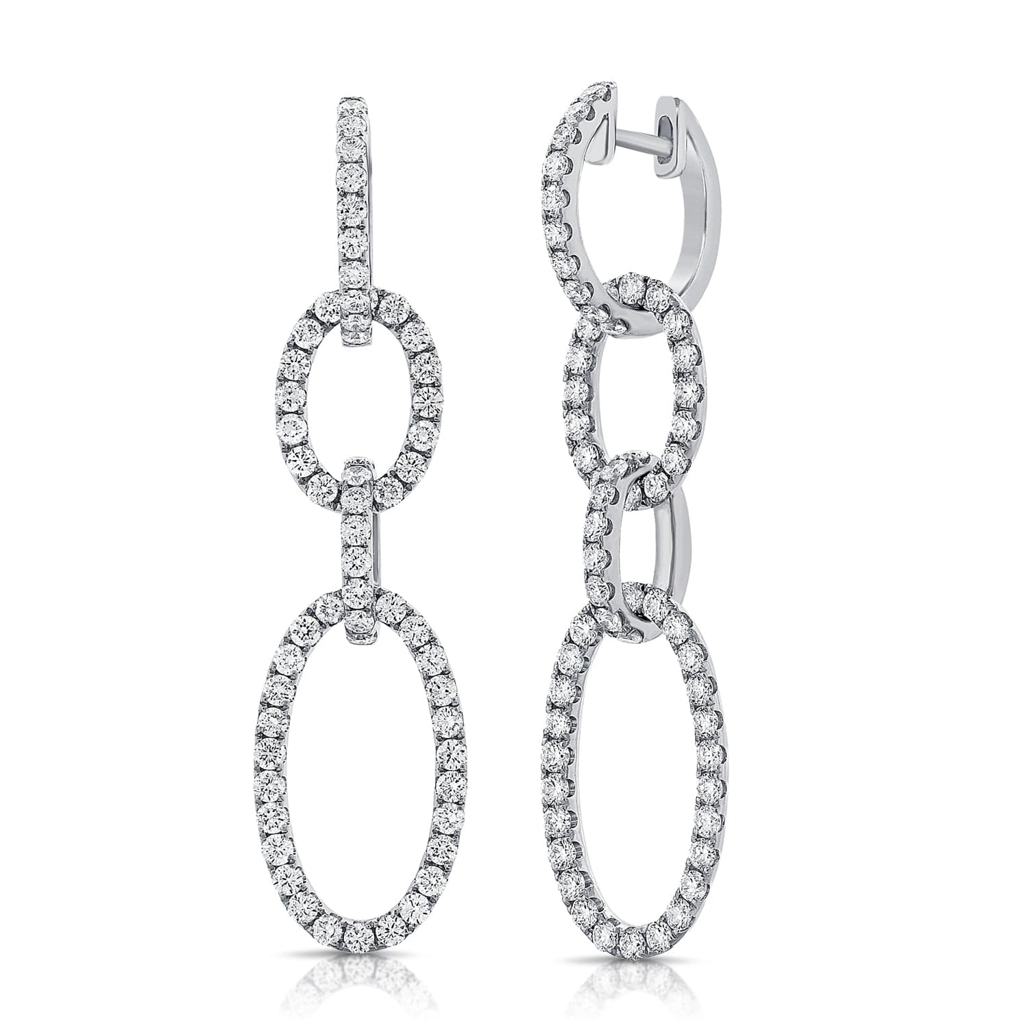 14K GOLD DIAMOND OVAL LINK DROP EARRINGS