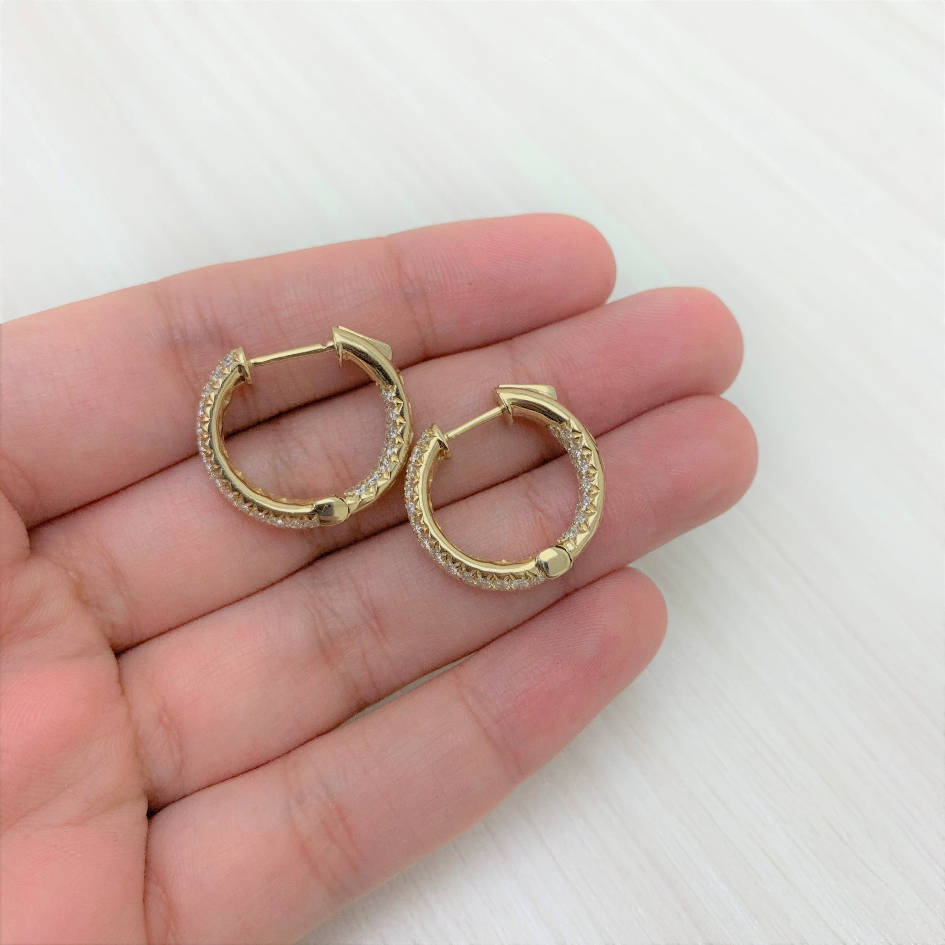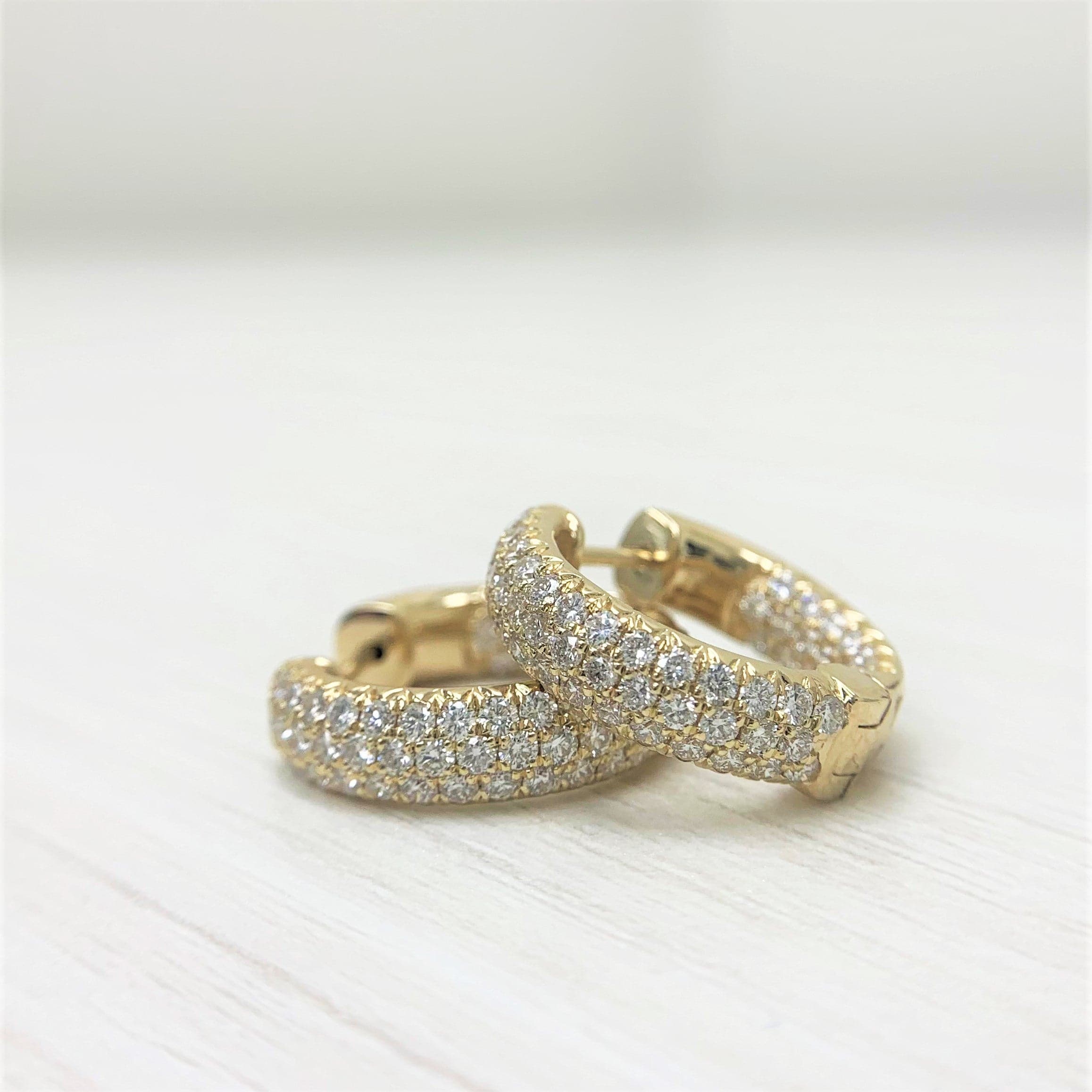 14K GOLD DIAMOND PAVE HOOP EARRINGS