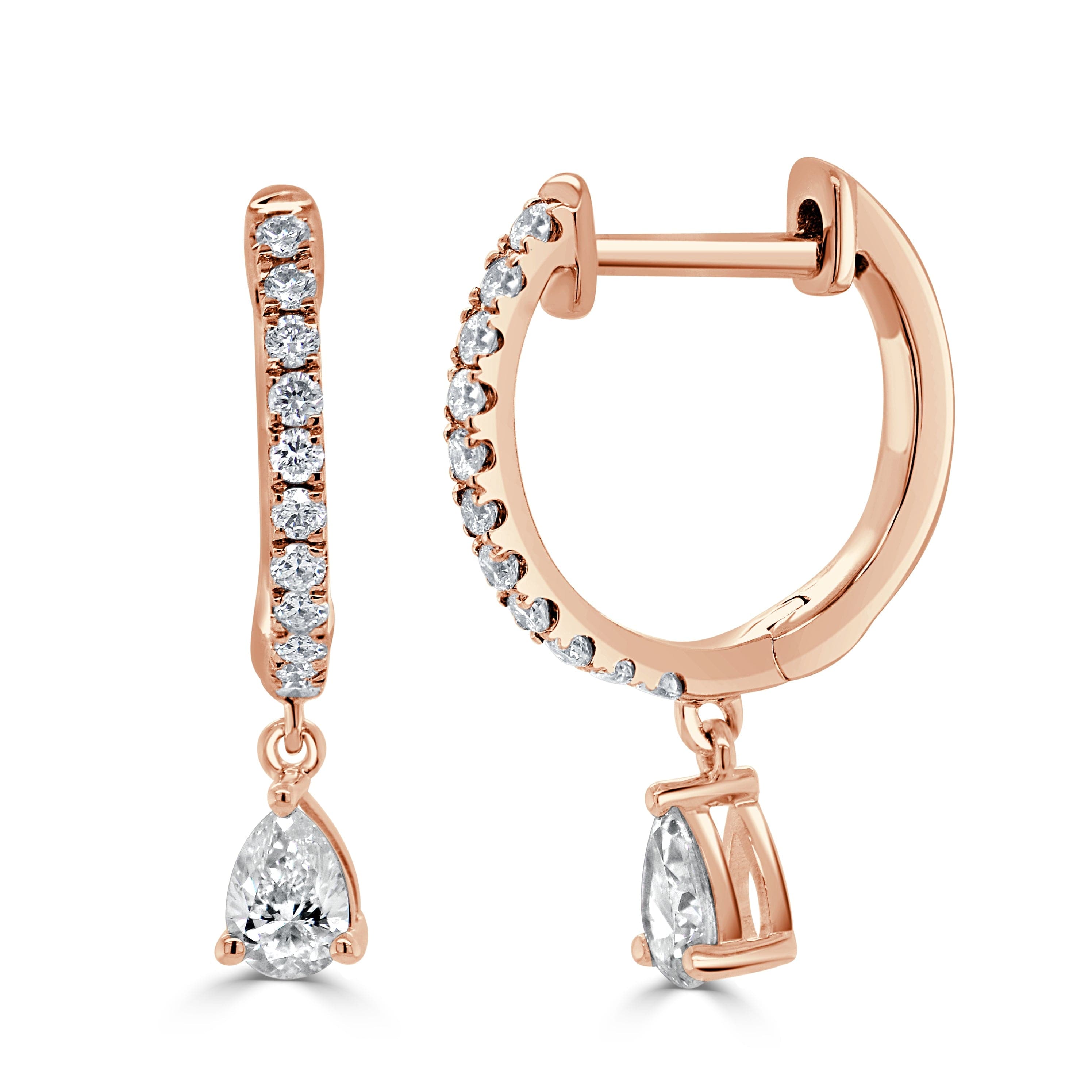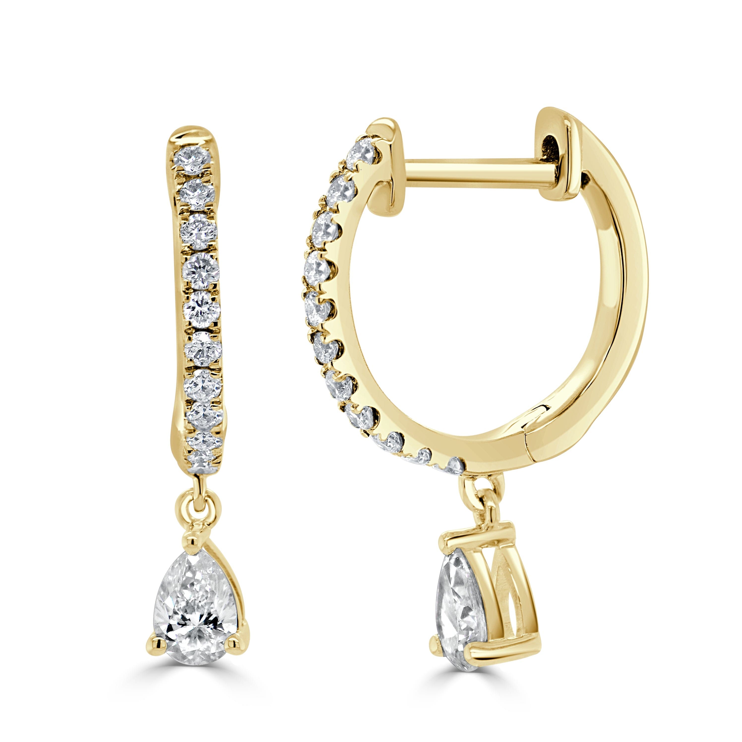 14K Gold & Diamond Pear-Shape Drop Huggie Earrings