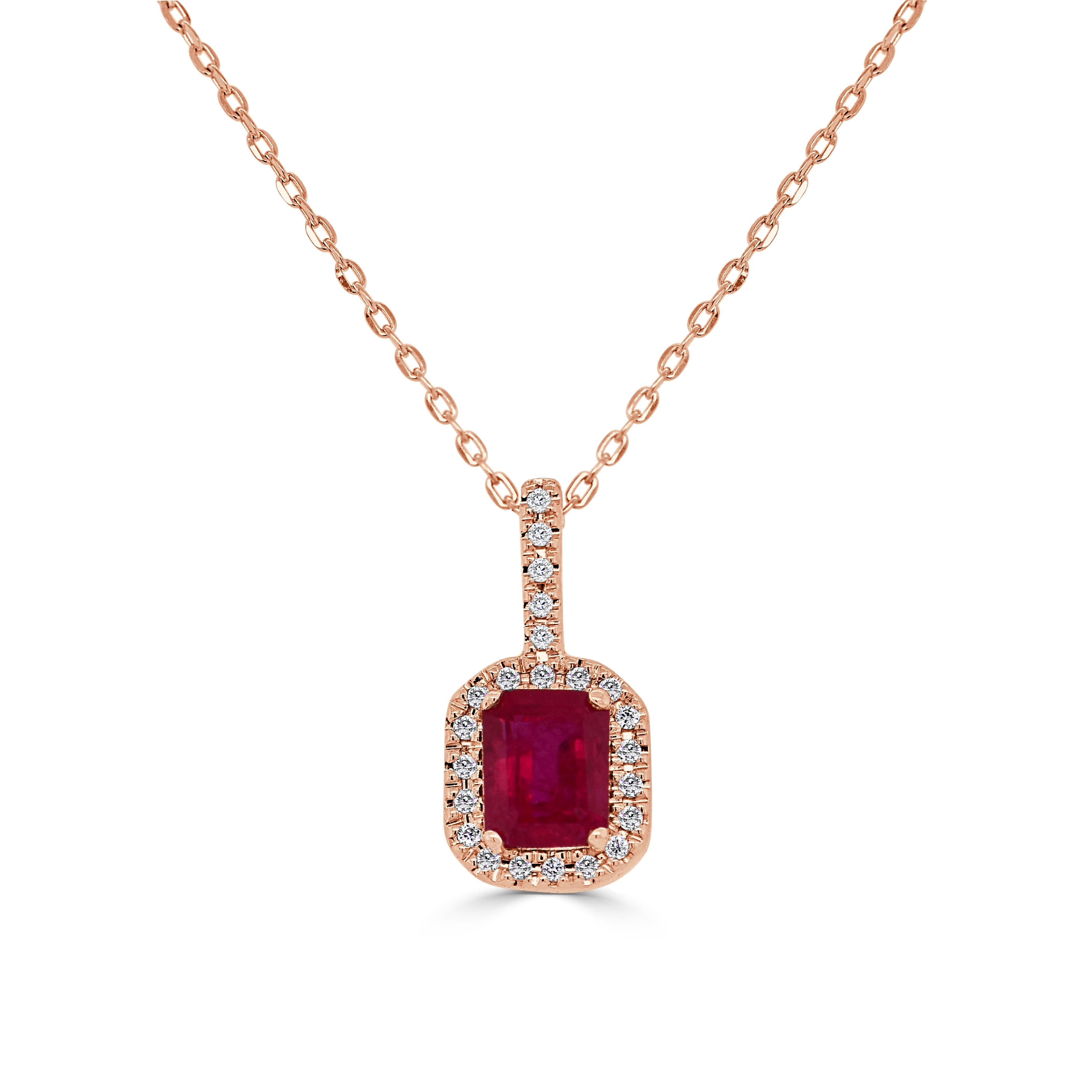 14K Gold, Diamond & Ruby Octagon Pendant