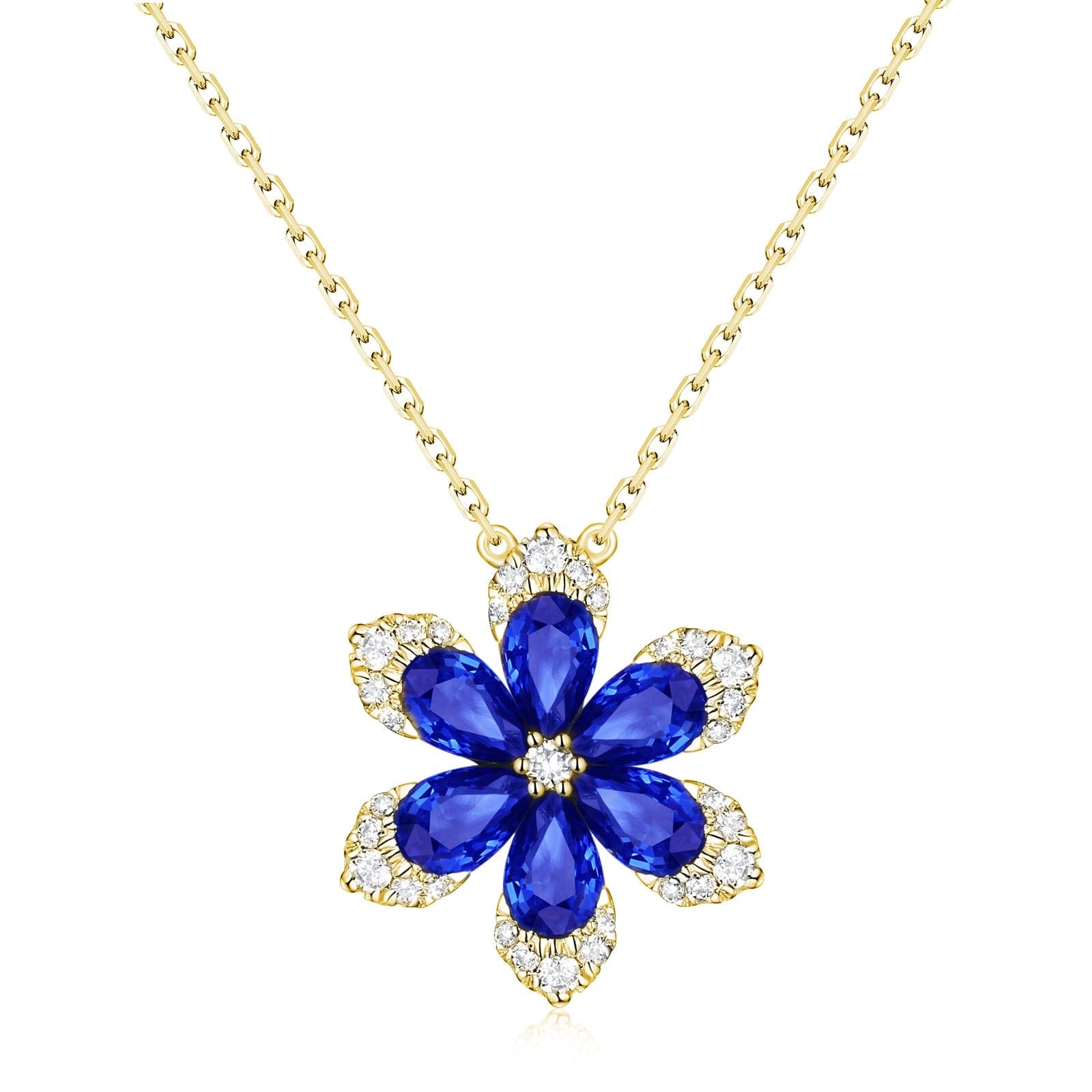 14K GOLD DIAMOND & SAPPHIRE FLOWER NECKLACE