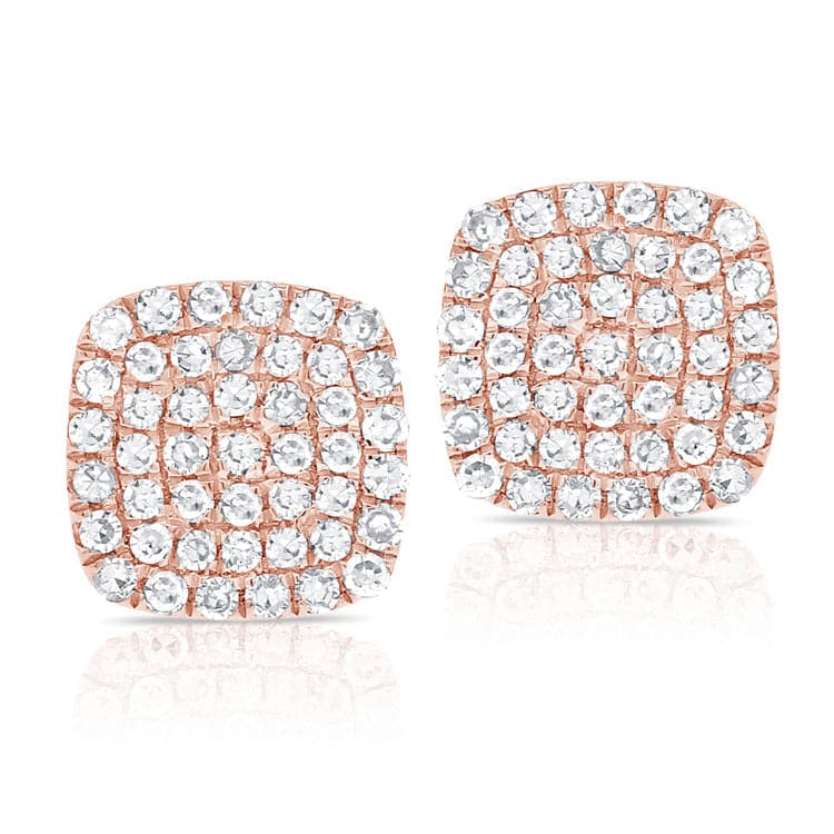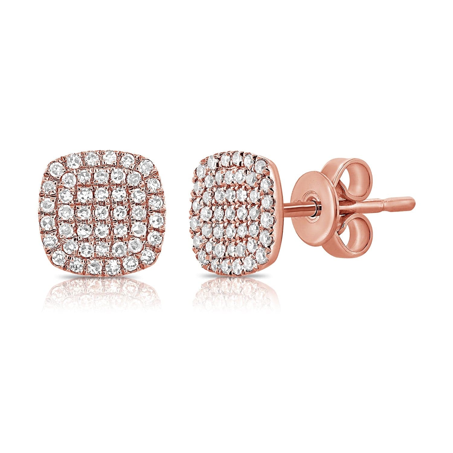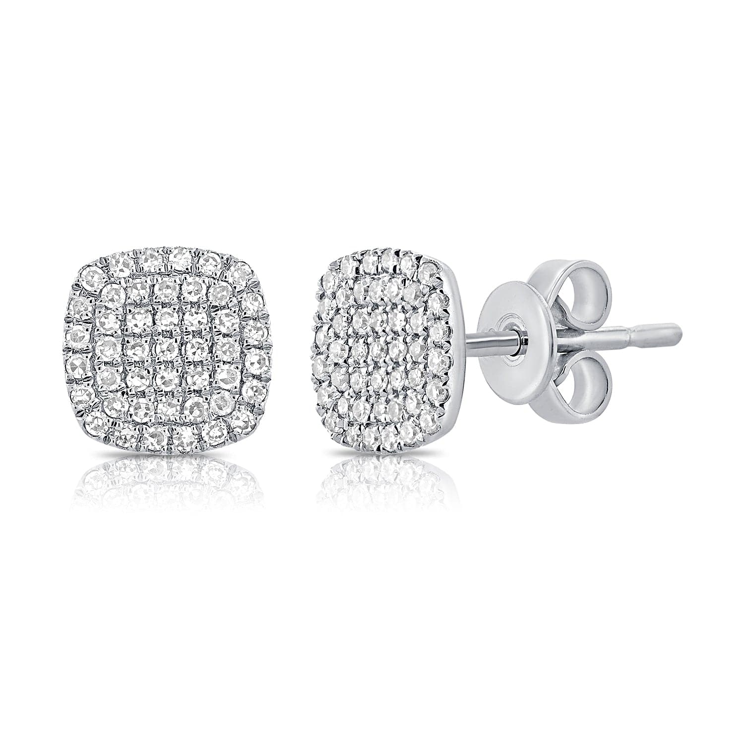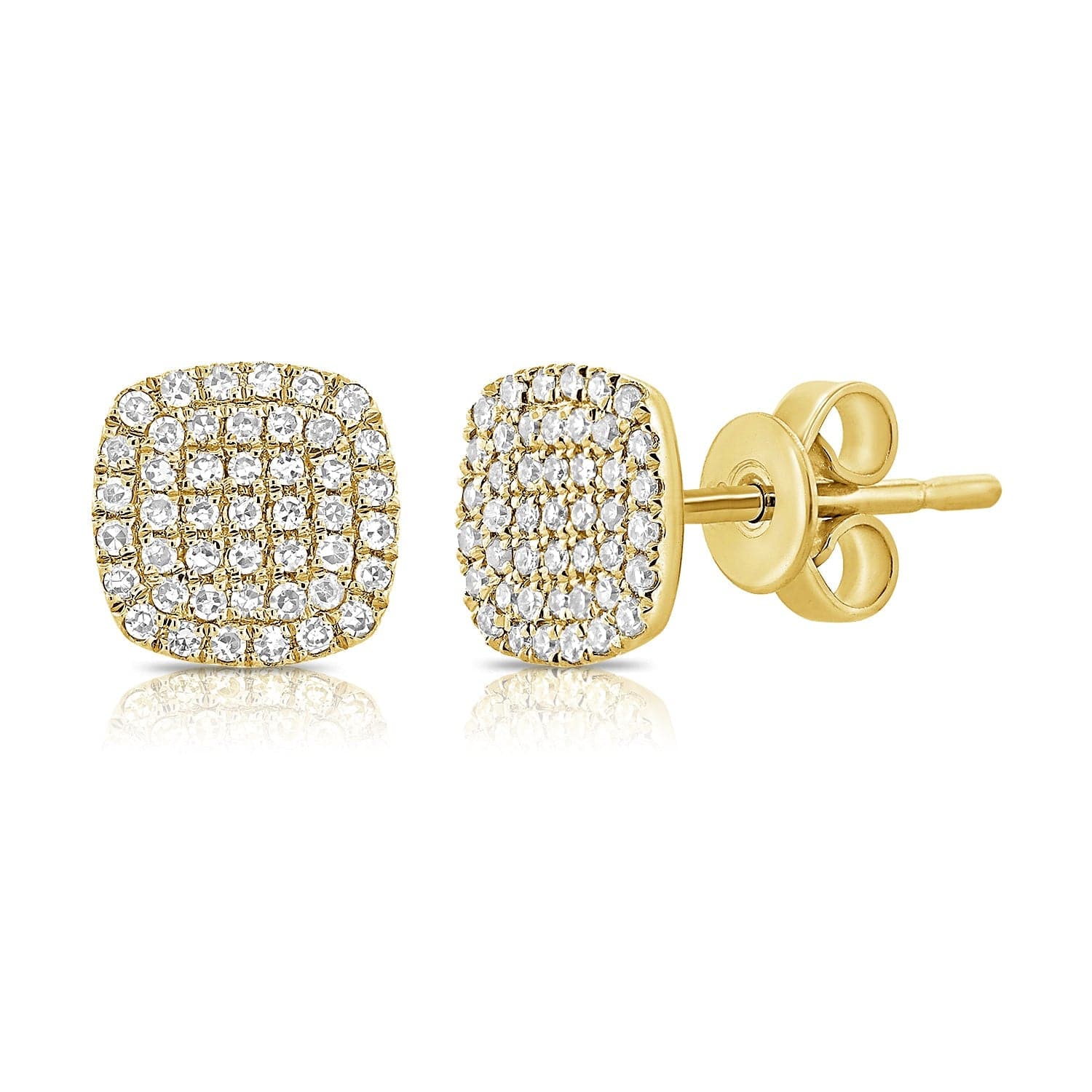 14K GOLD DIAMOND CUSHION SHAPE PAVE STUD EARRINGS