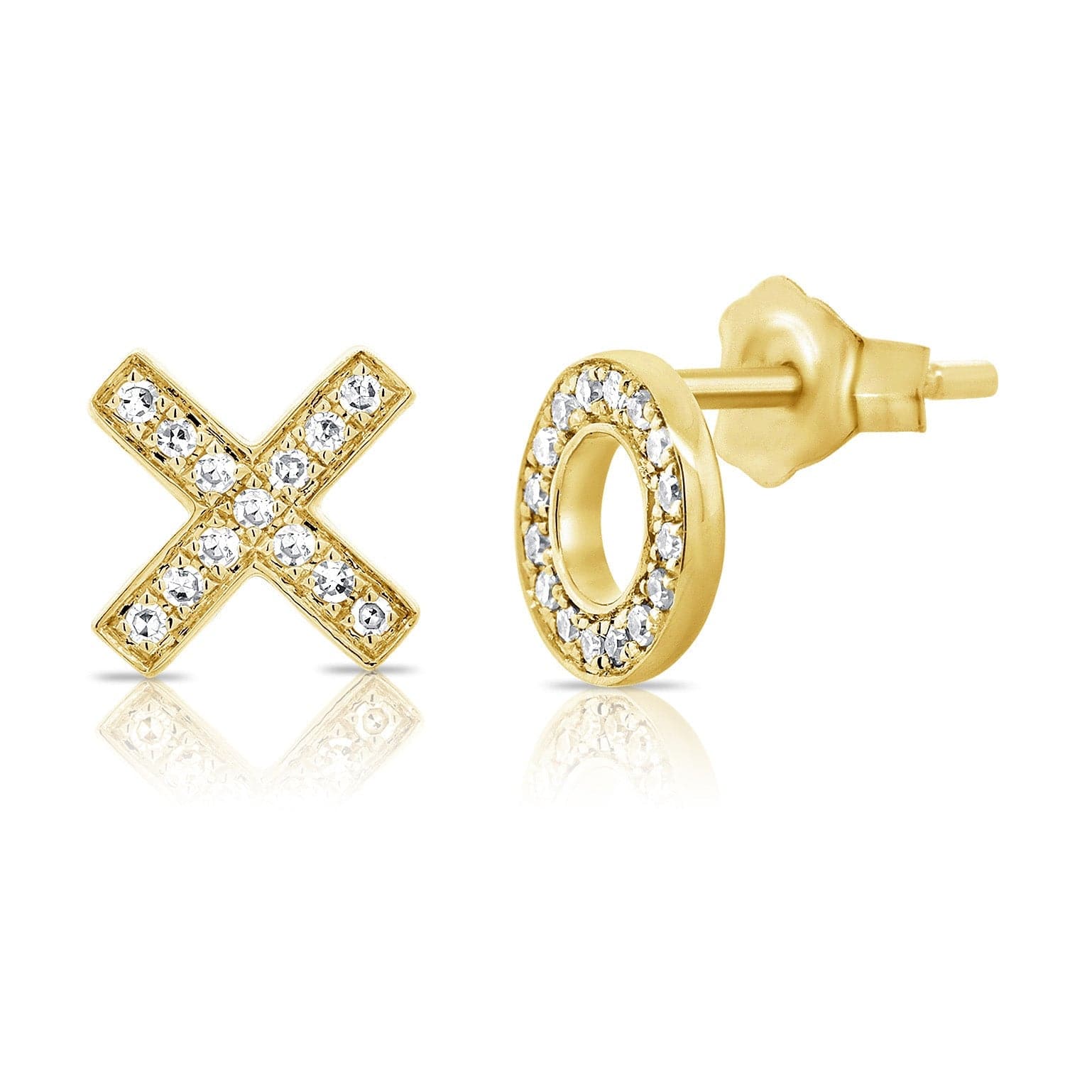 14k Gold & Diamond XO Diamond Mismatched Stud Earrings