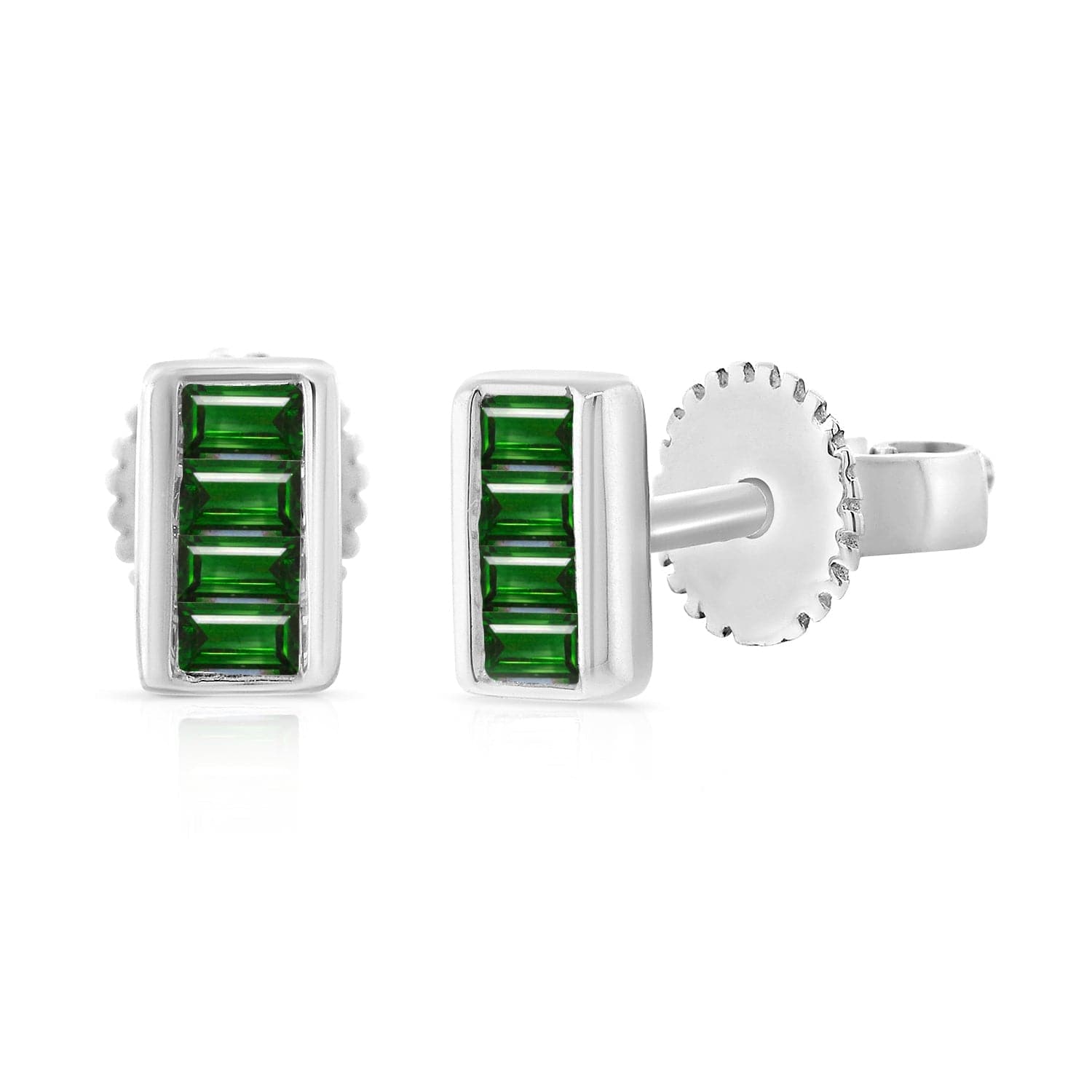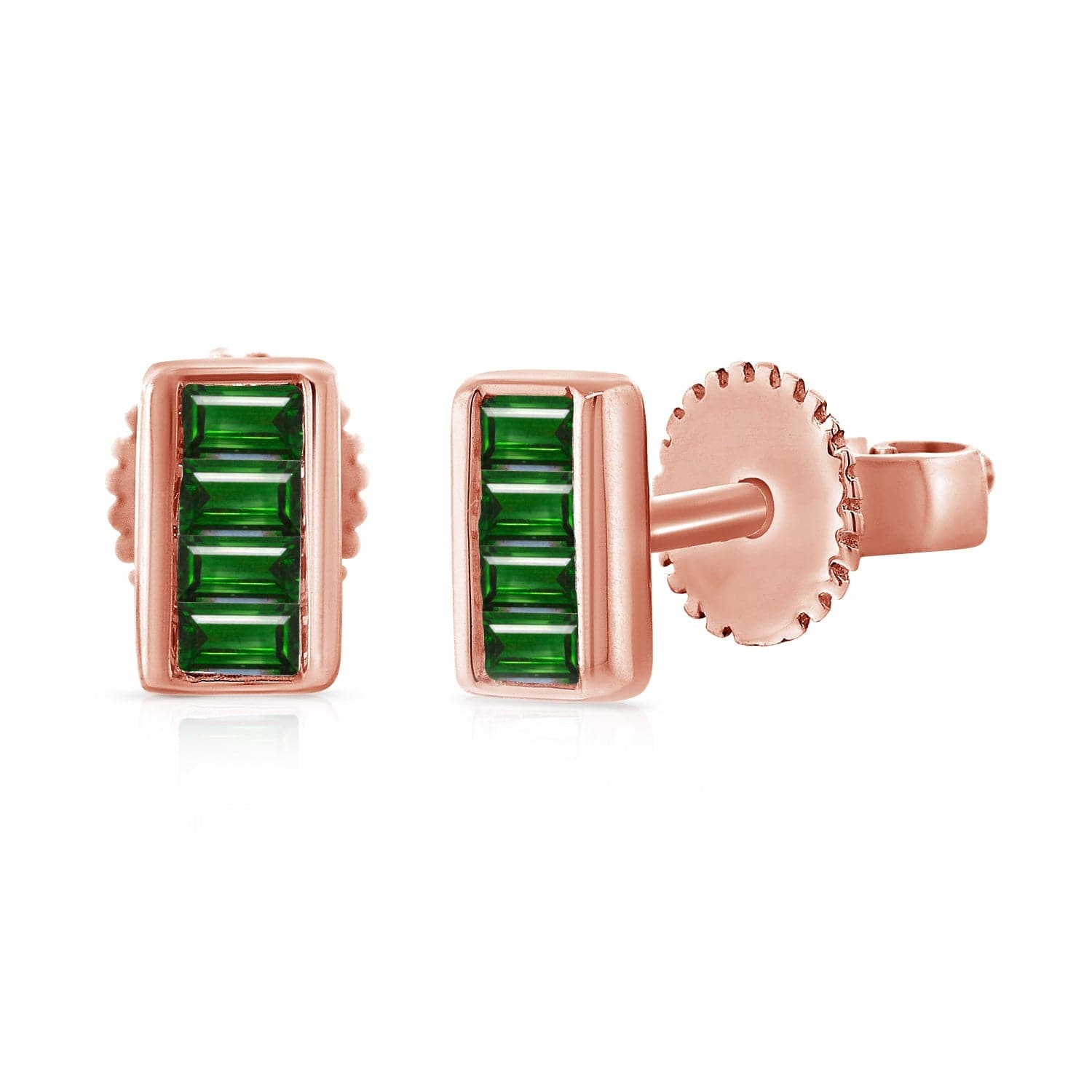 14K GOLD EMERALD TINY BAGUETTE STUD EARRINGS