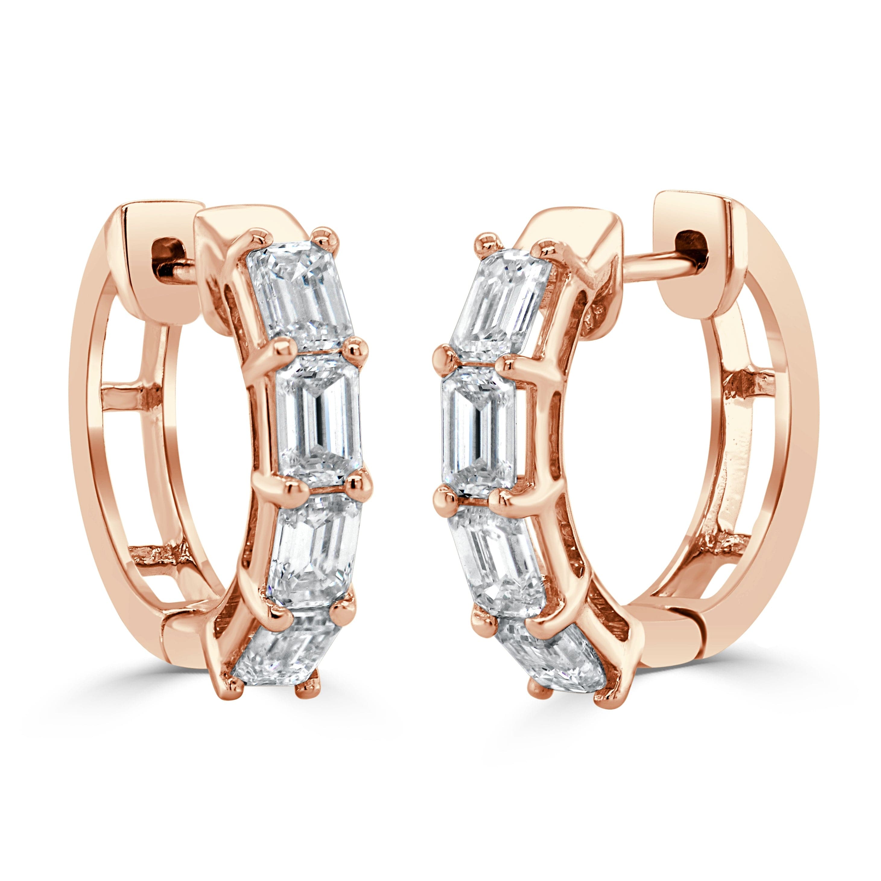 14K GOLD EMERALD-CUT DIAMOND HUGGIE EARRINGS