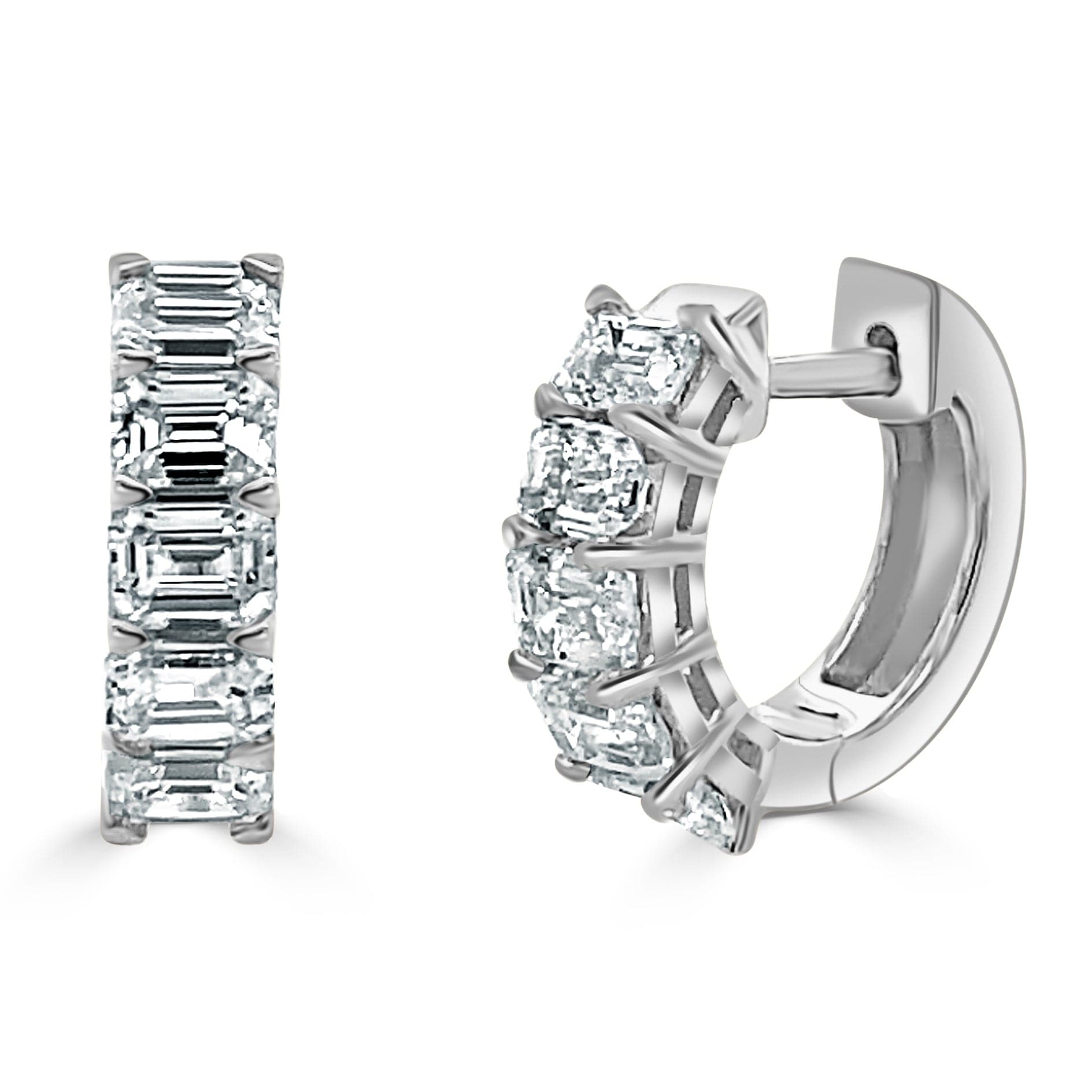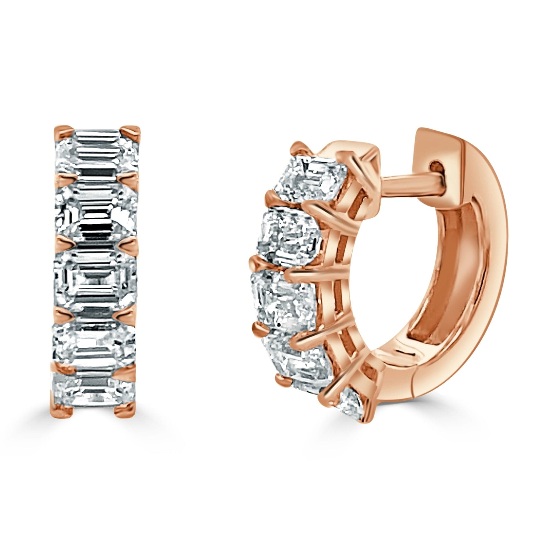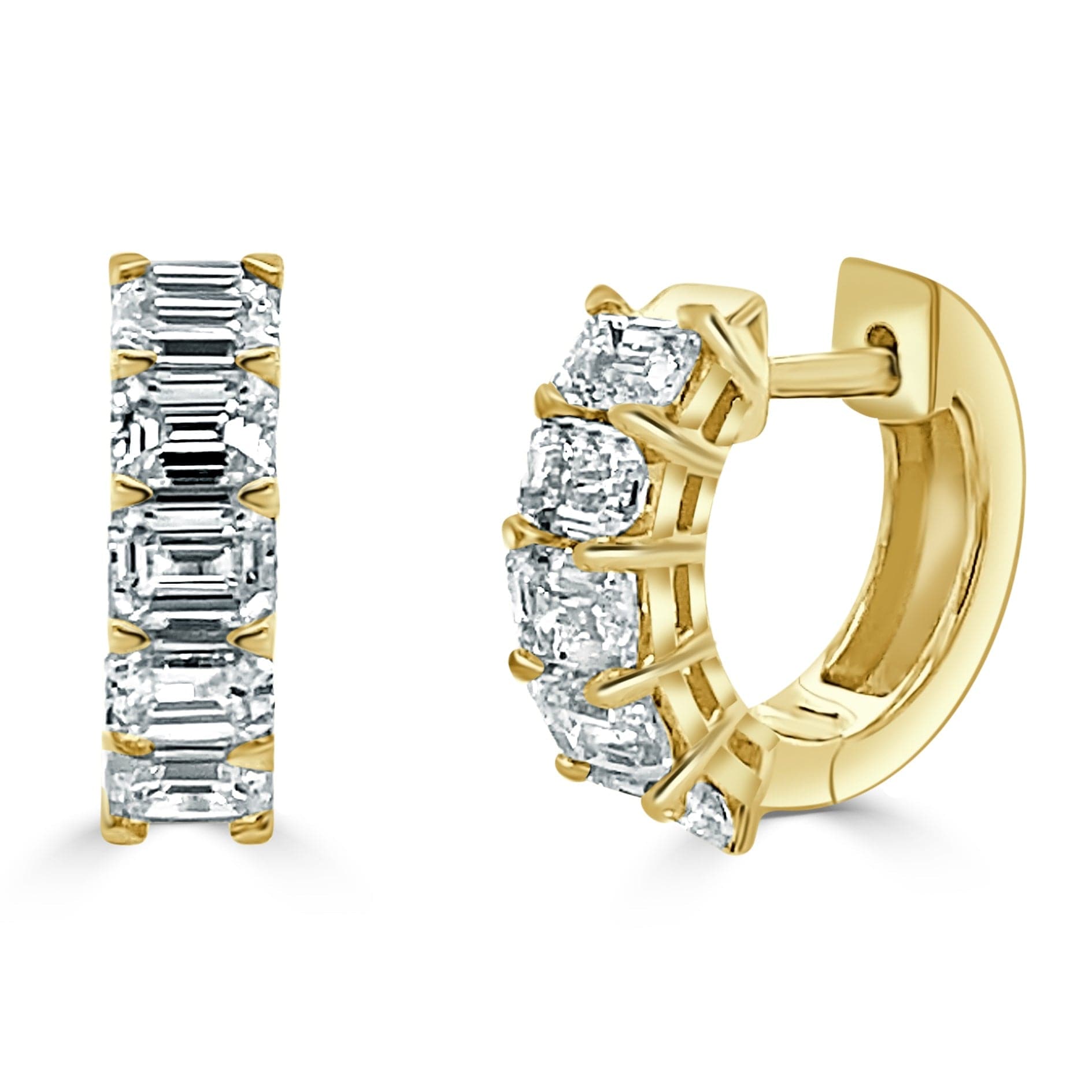 14K GOLD EMERALD-CUT DIAMOND HUGGIE EARRINGS