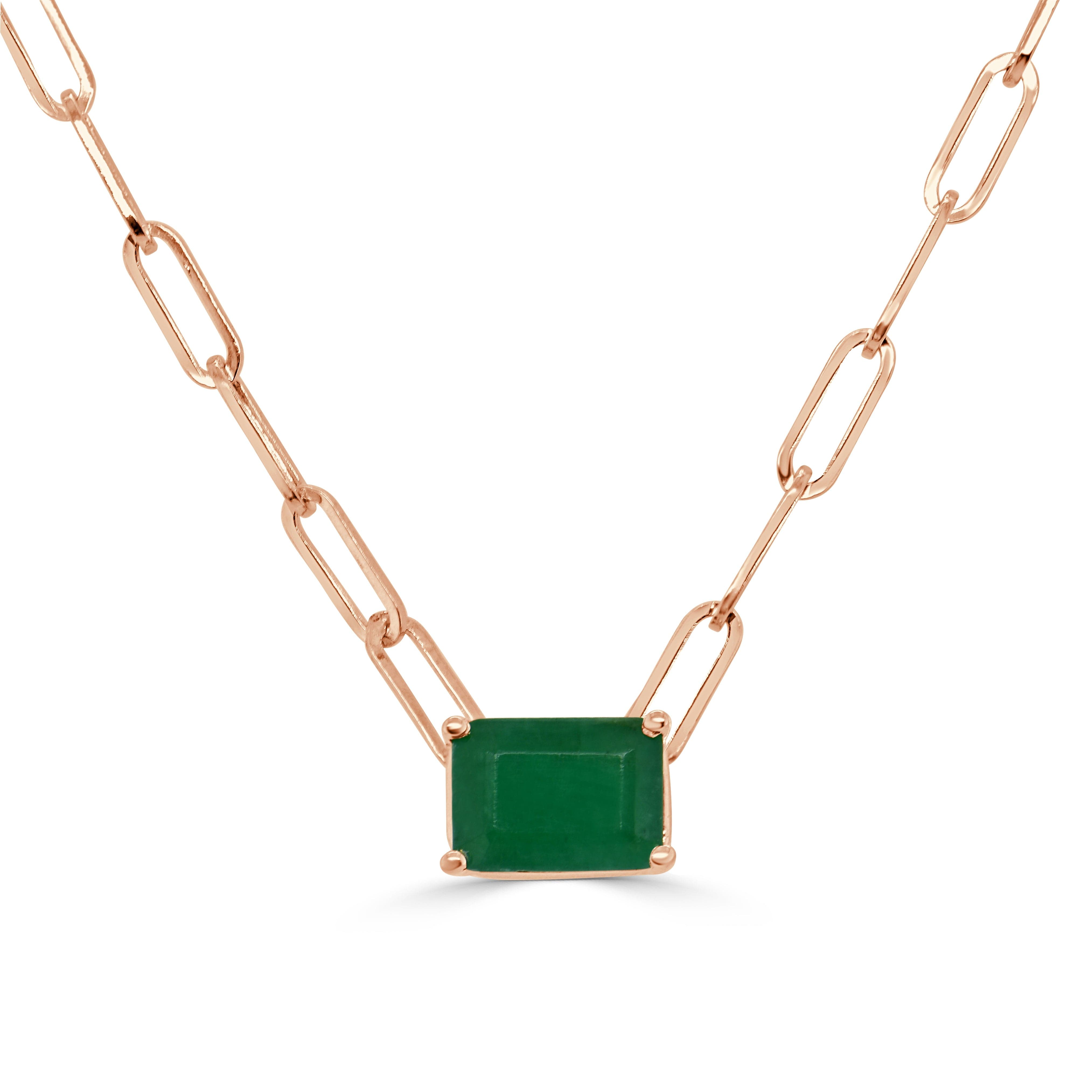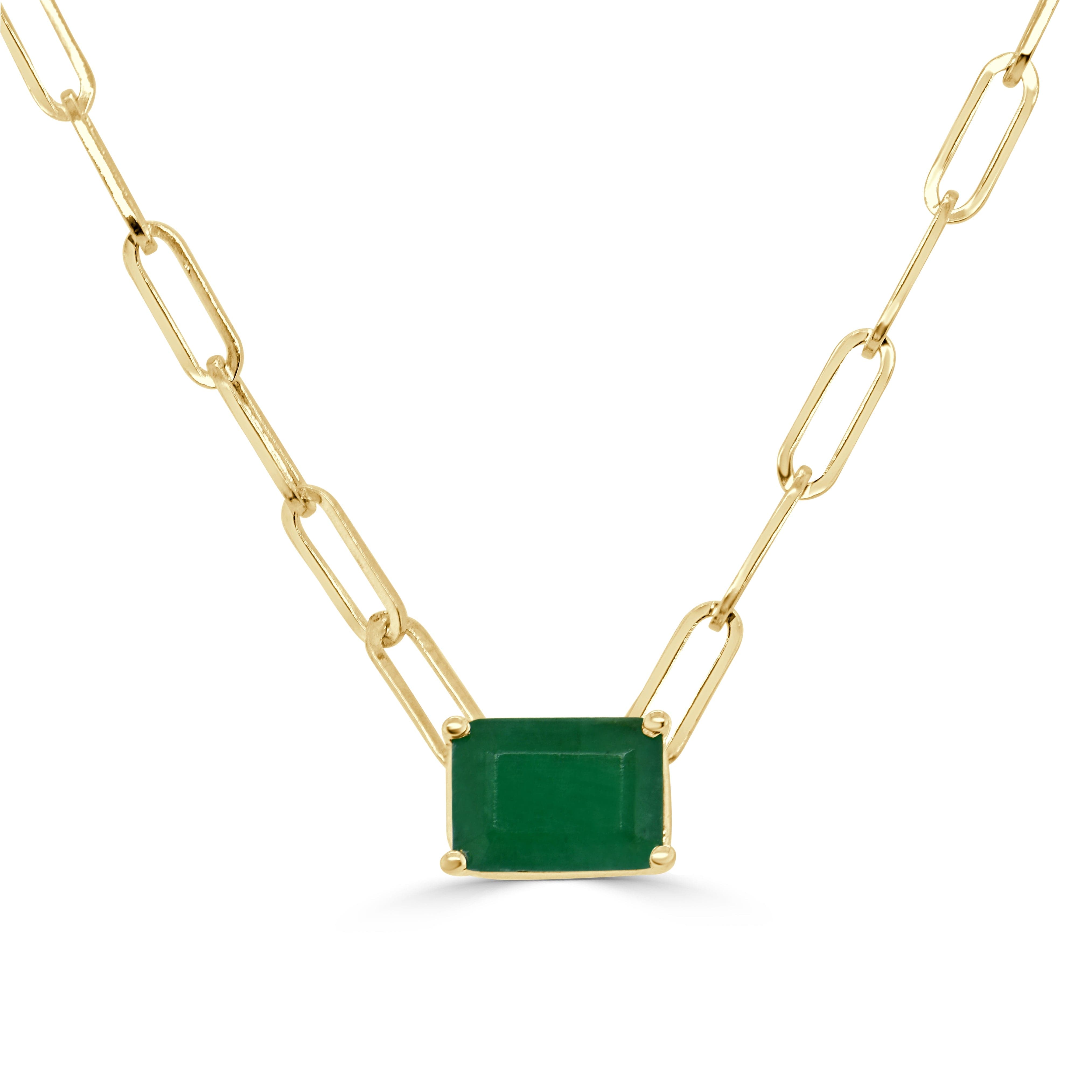 14K GOLD & GREEN EMERALD PAPERCLIP LINK NECKLACE