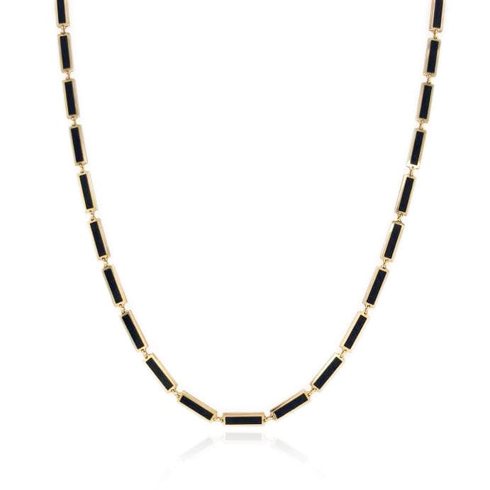 14K YELLOW GOLD ONYX STATION BAR NECKLACE