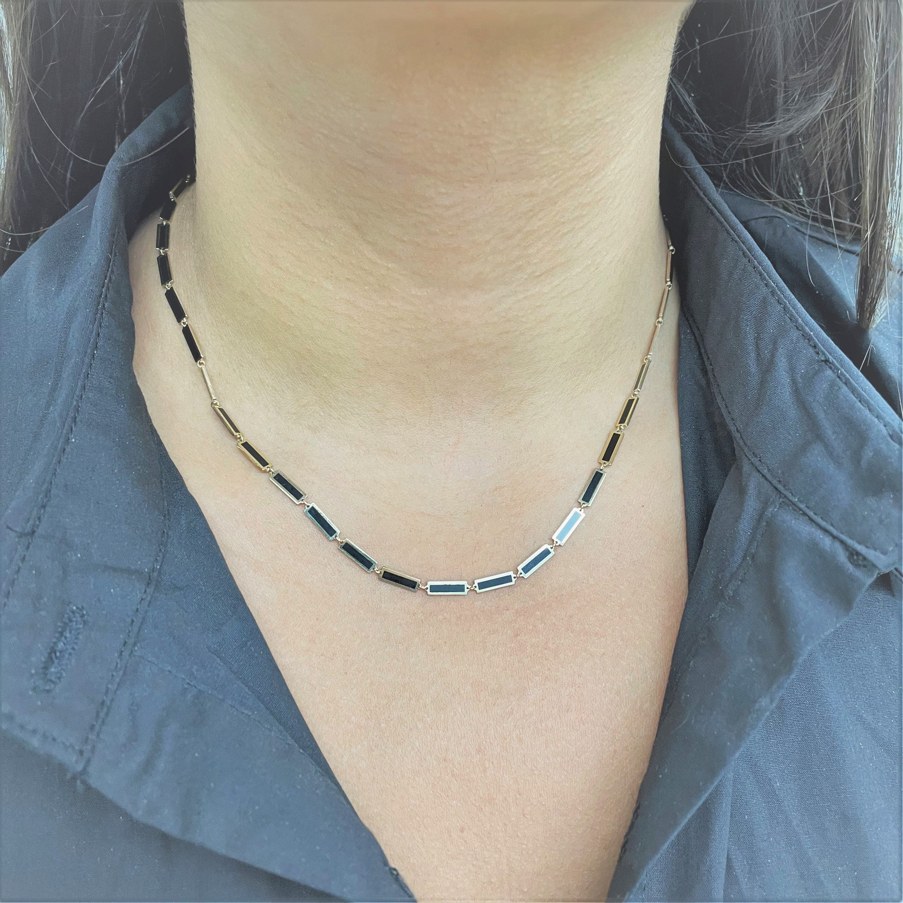 14k Gold & Onyx Station Bar Necklace
