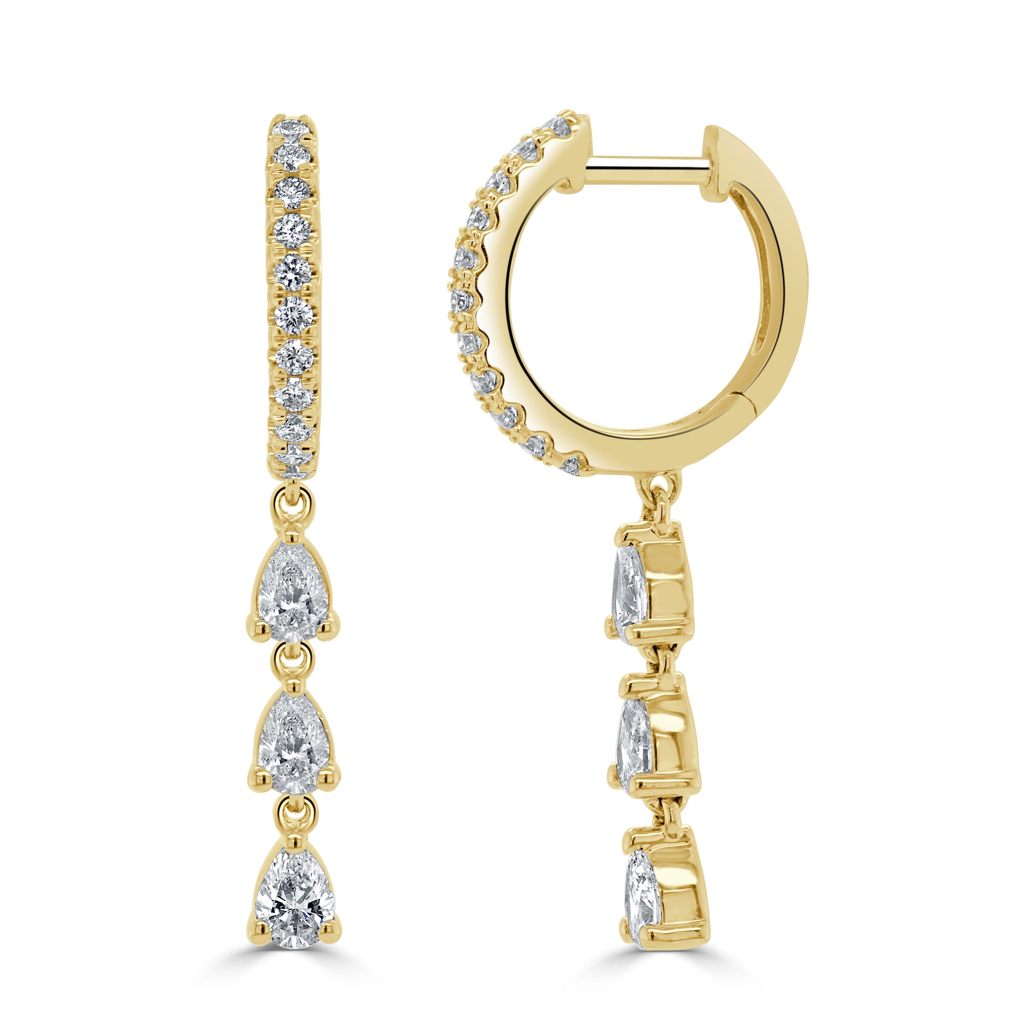 14K Gold & Pear-Shape Diamond Drop Huggie Earrings