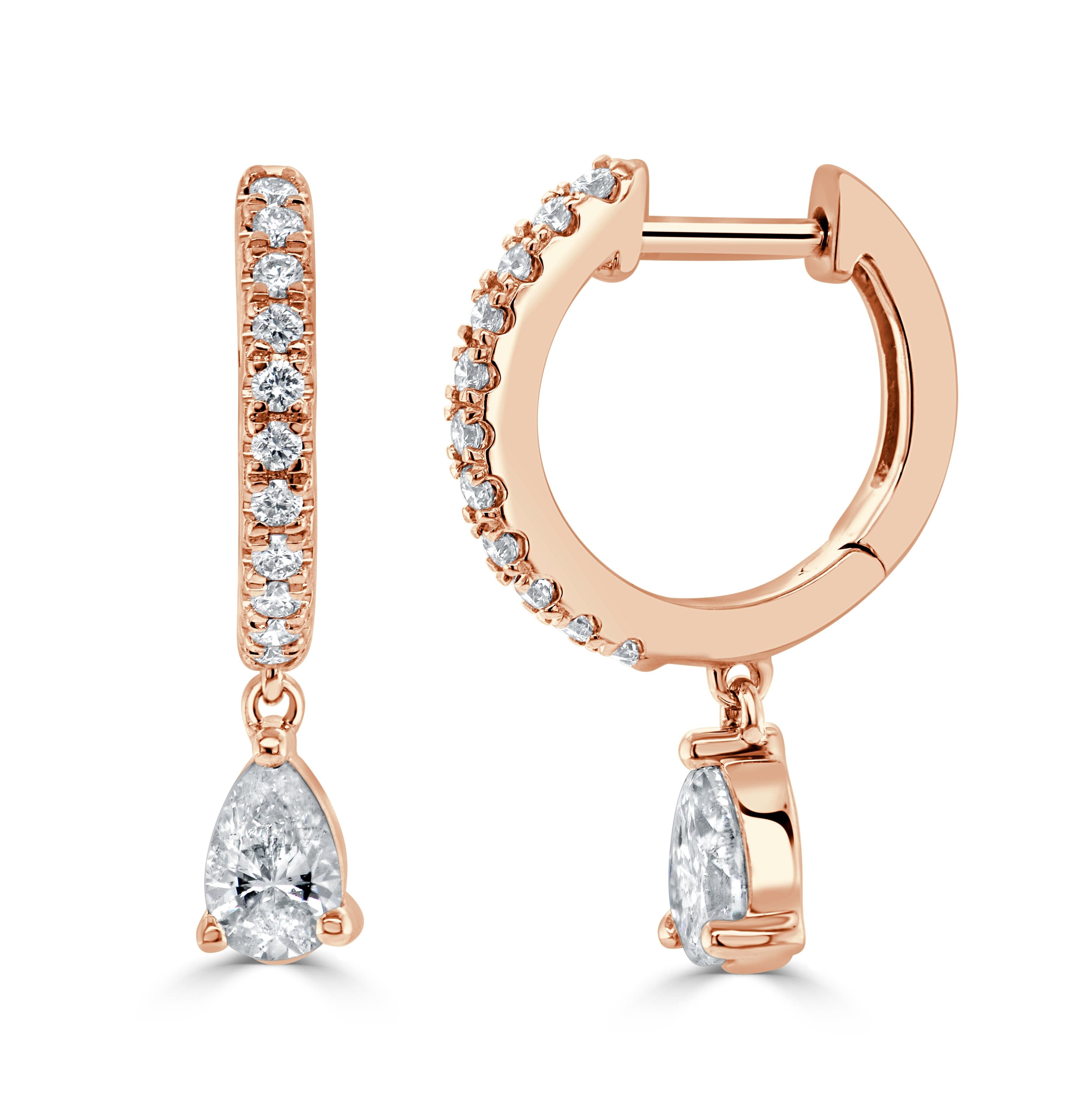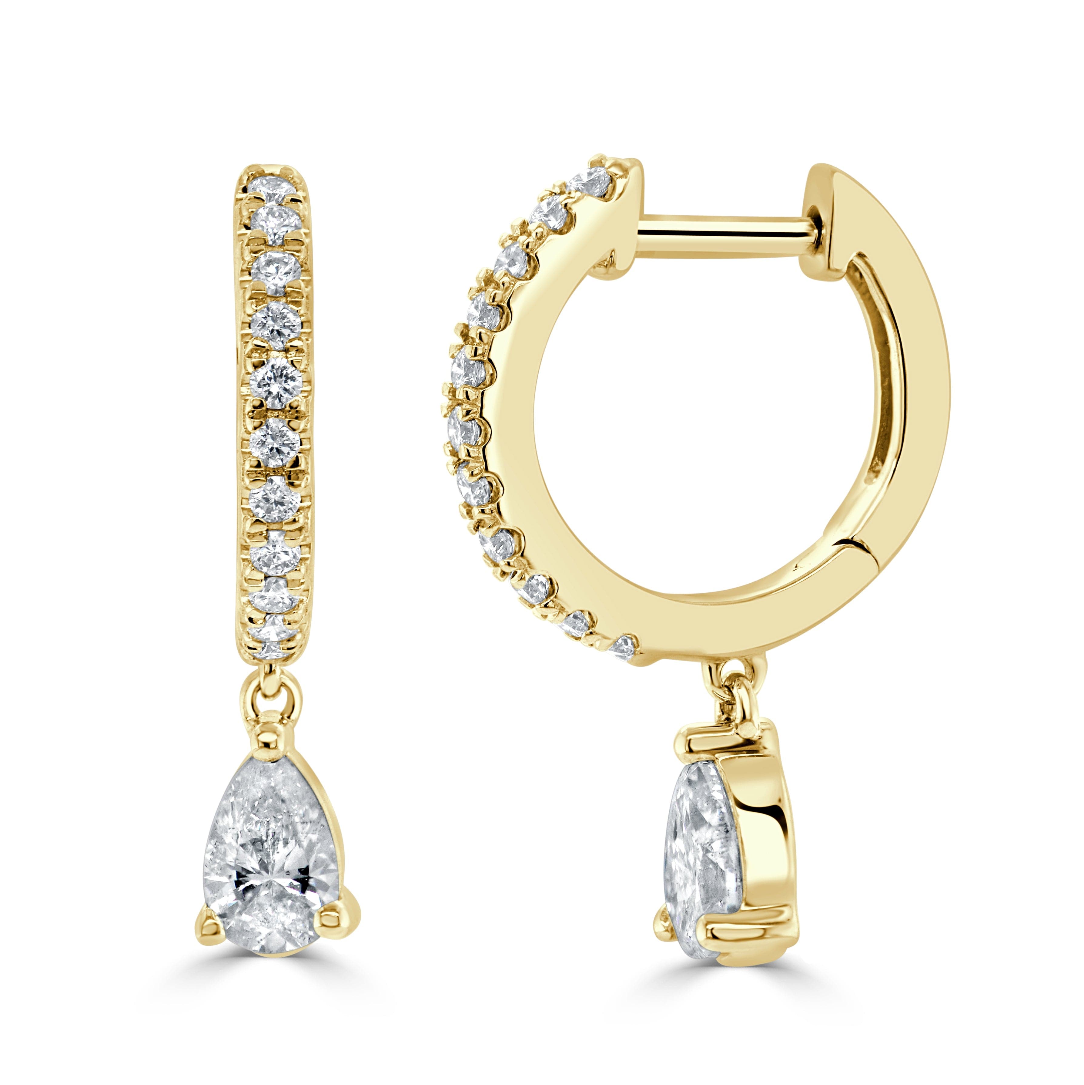 14K Gold & Pear-Shape Diamond Dangle Huggie Earrings