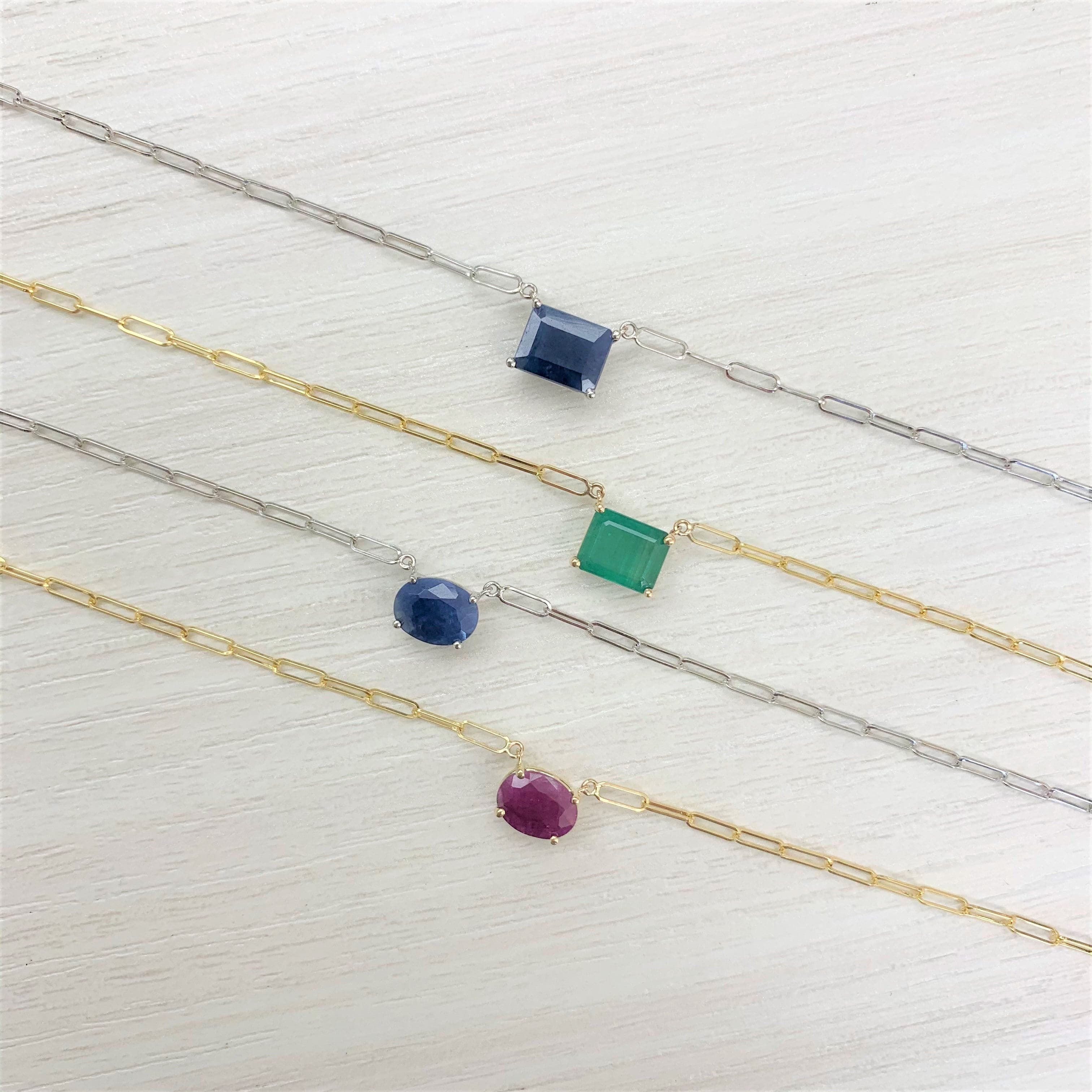 14K GOLD RUBY PAPERCLIP LINK NECKLACE