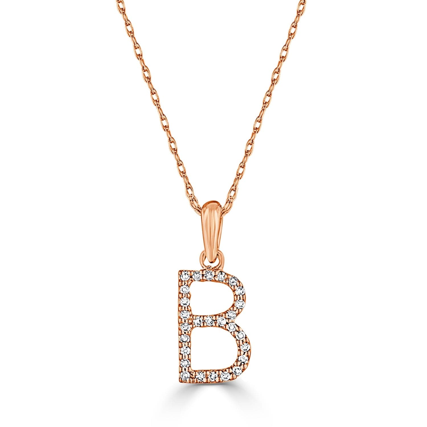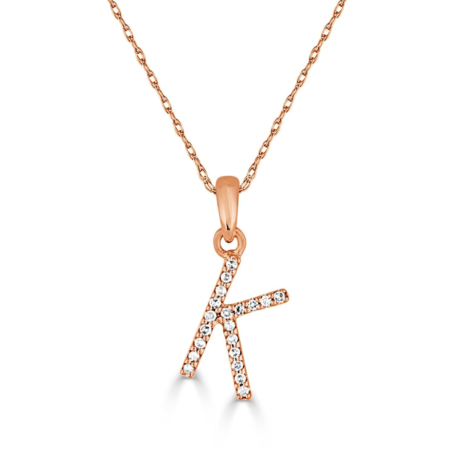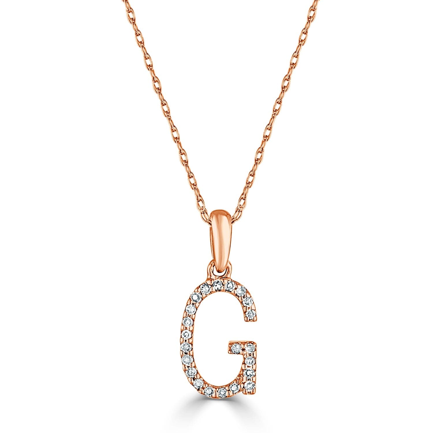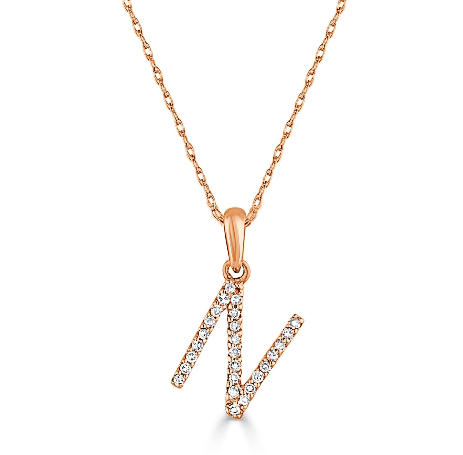 14K Rose Diamond initial pendent with 16” Rope Chain