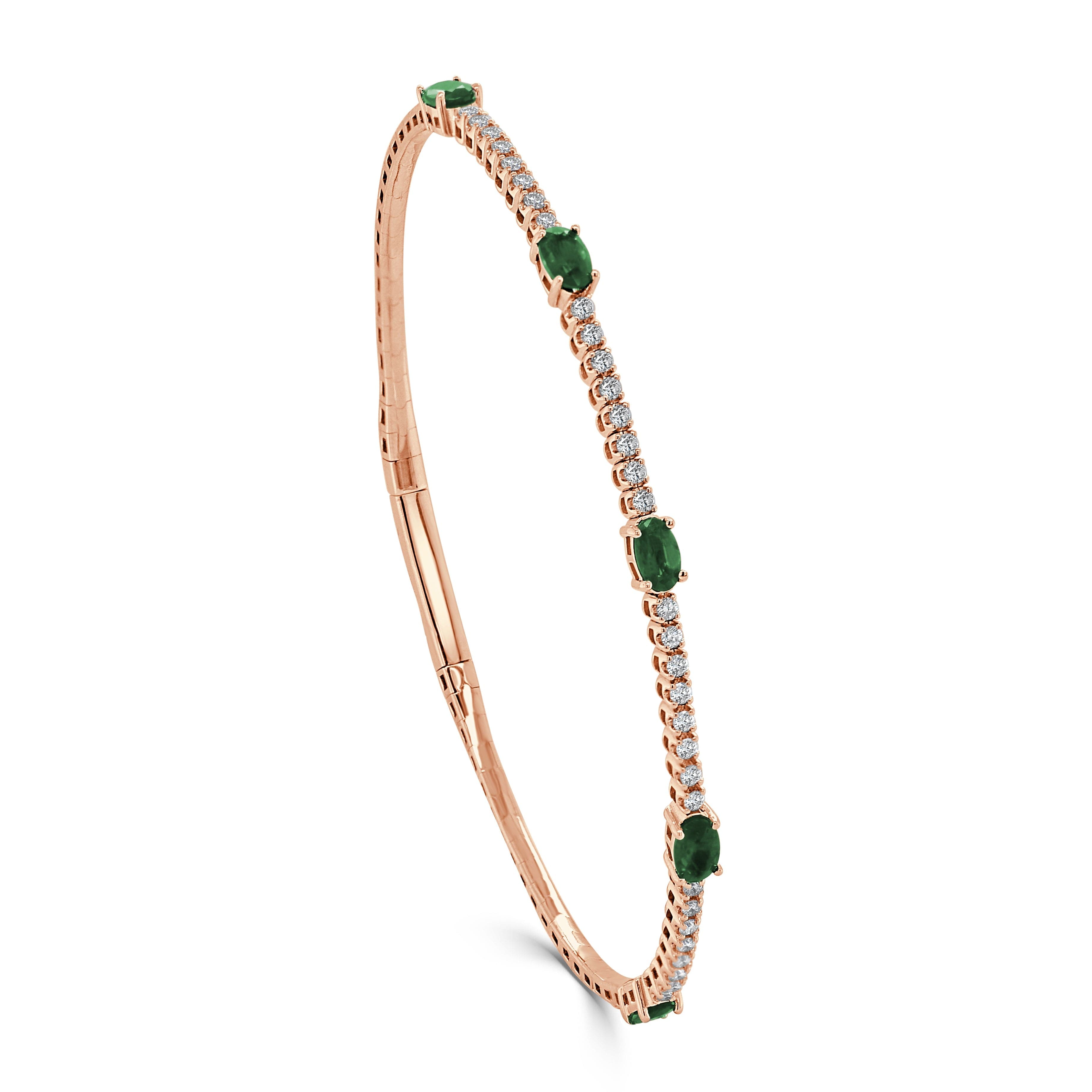 14K Gold Emerald & Diamond Station Flexible Bangle