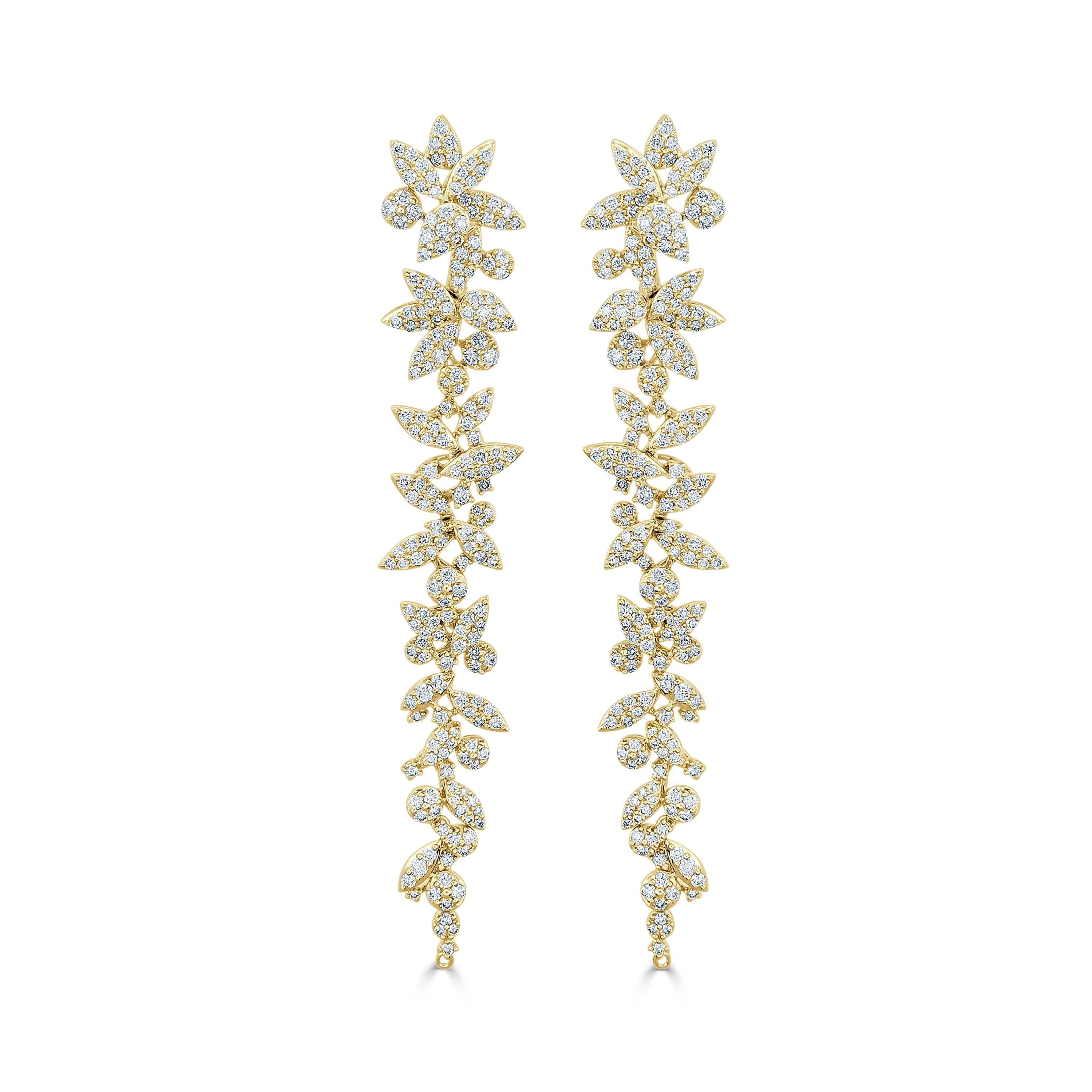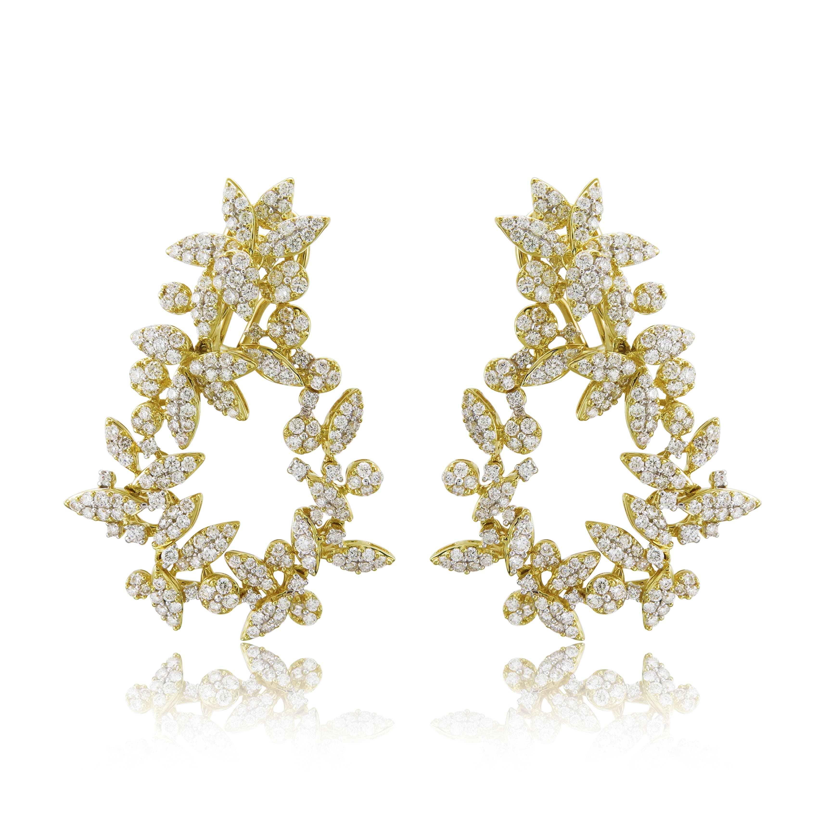 18k Gold & Diamond Flower Cluster Dangle Earrings