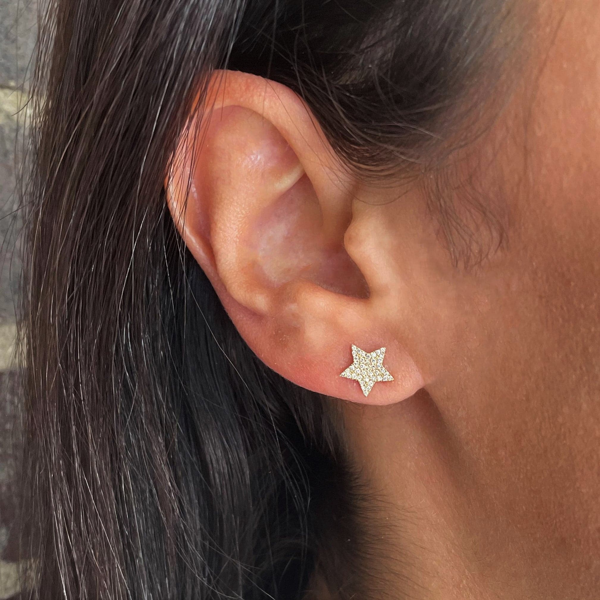 14K GOLD DIAMOND STAR STUD EARRINGS