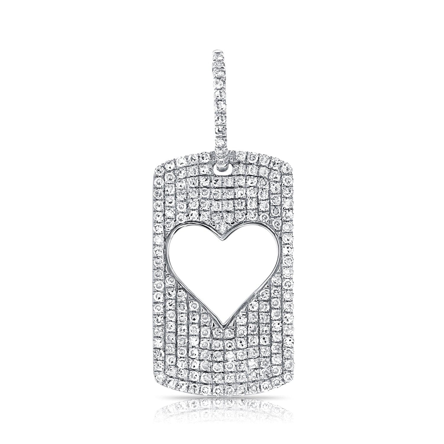 14K GOLD DIAMOND OPEN HEART DOG TAG CHARM