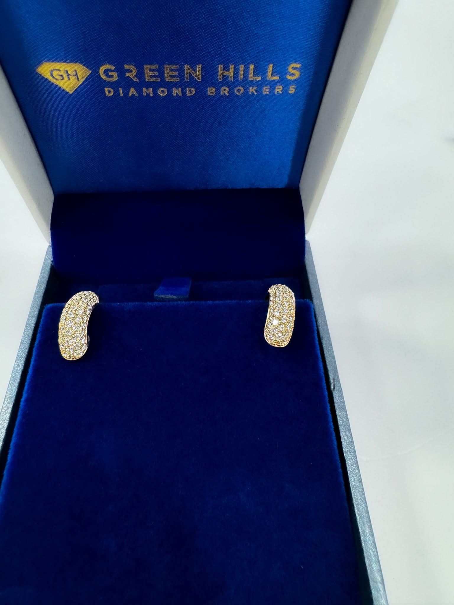 Elevate your everyday look with these elegant pavé lab grown diamond huggie earrings. Crafted in 14k white or yellow gold, these earings feature a sleek, curved design encrusted with brilliant diamonds for the perfect touch of sparkle. Comfortable and versatile, they’re the ultimate accessory for any occasion.