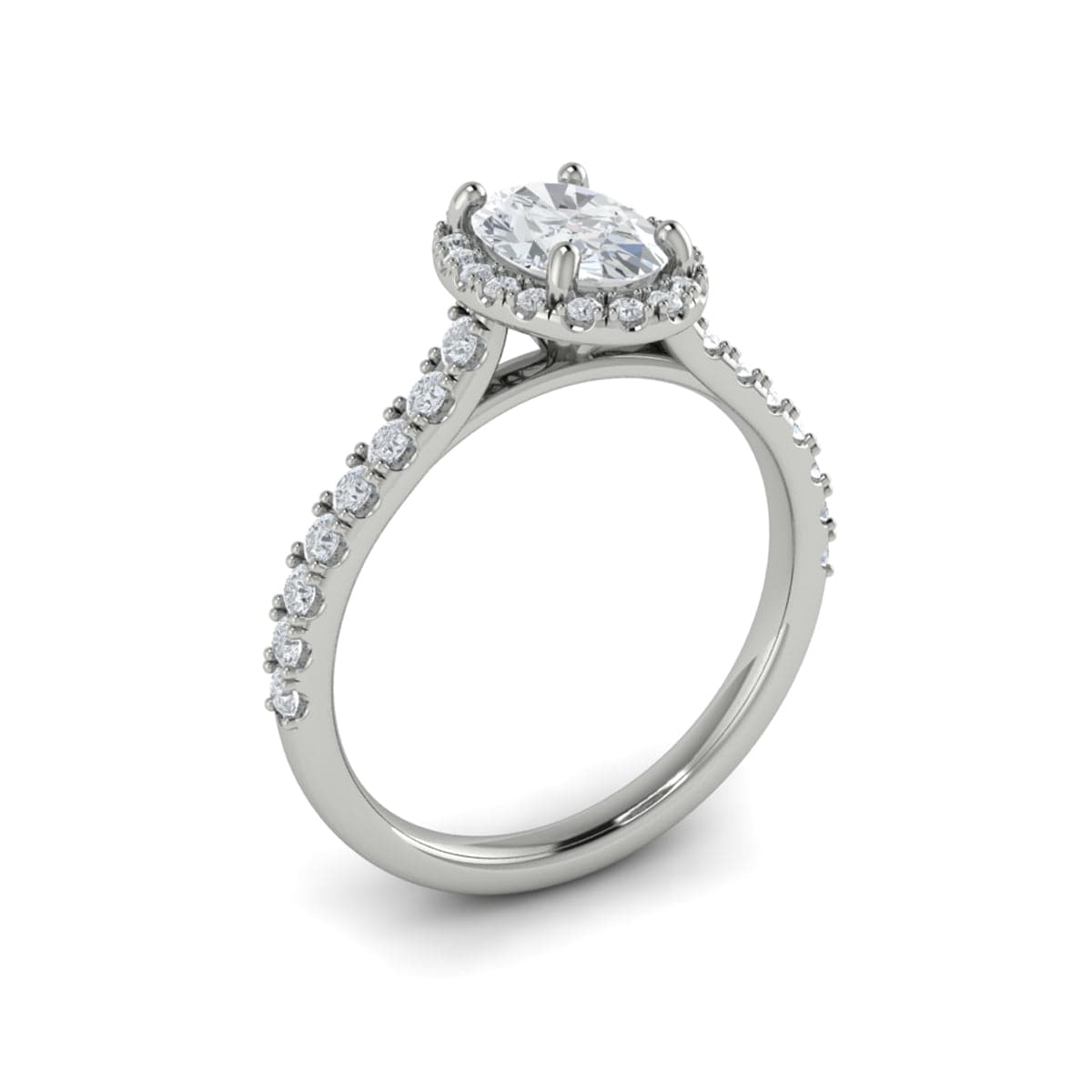 Experience timeless elegance with our cathedral engagement ring. The stunning pave band provides a delicate touch, while the halo and cathedral setting enhance the brilliance of the center stone. Perfect for a classic yet glamorous look. Available in 14 karat white, yellow, or rose gold, and can be custom-made to match all diamond shapes! Contact store for pricing on lab-grown.