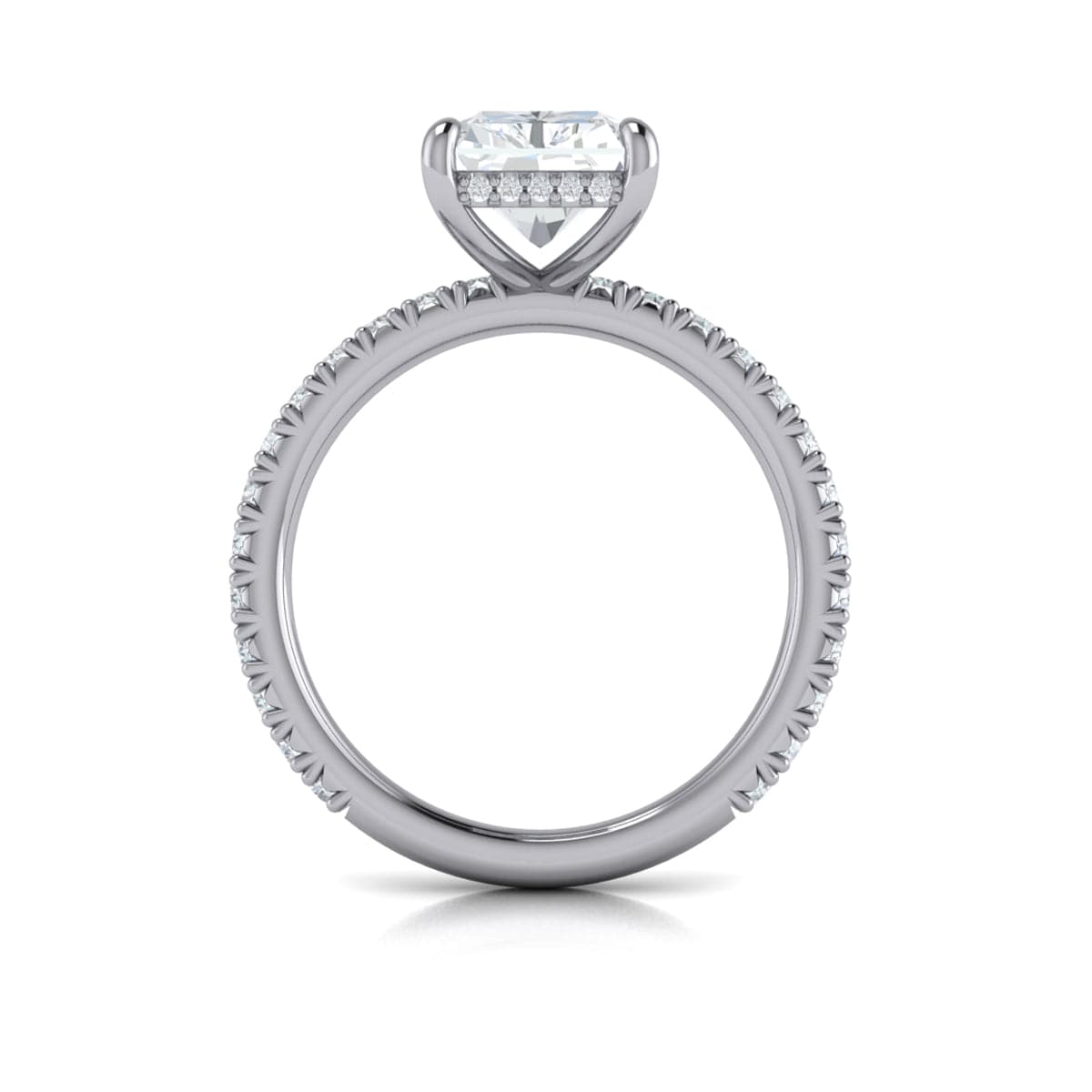 14K WG FRENCH PAVE ENGAGEMENT RING WITH UNDER HALO. SET WITH 0.60CTW OF ROUND BRILLIANT DIAMONDS