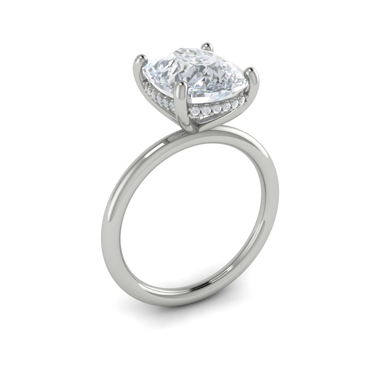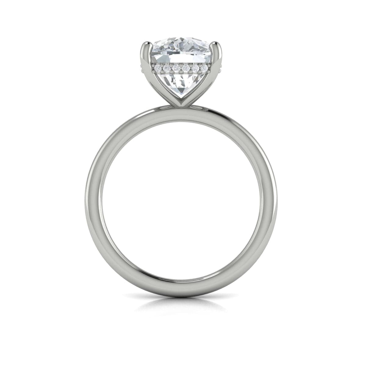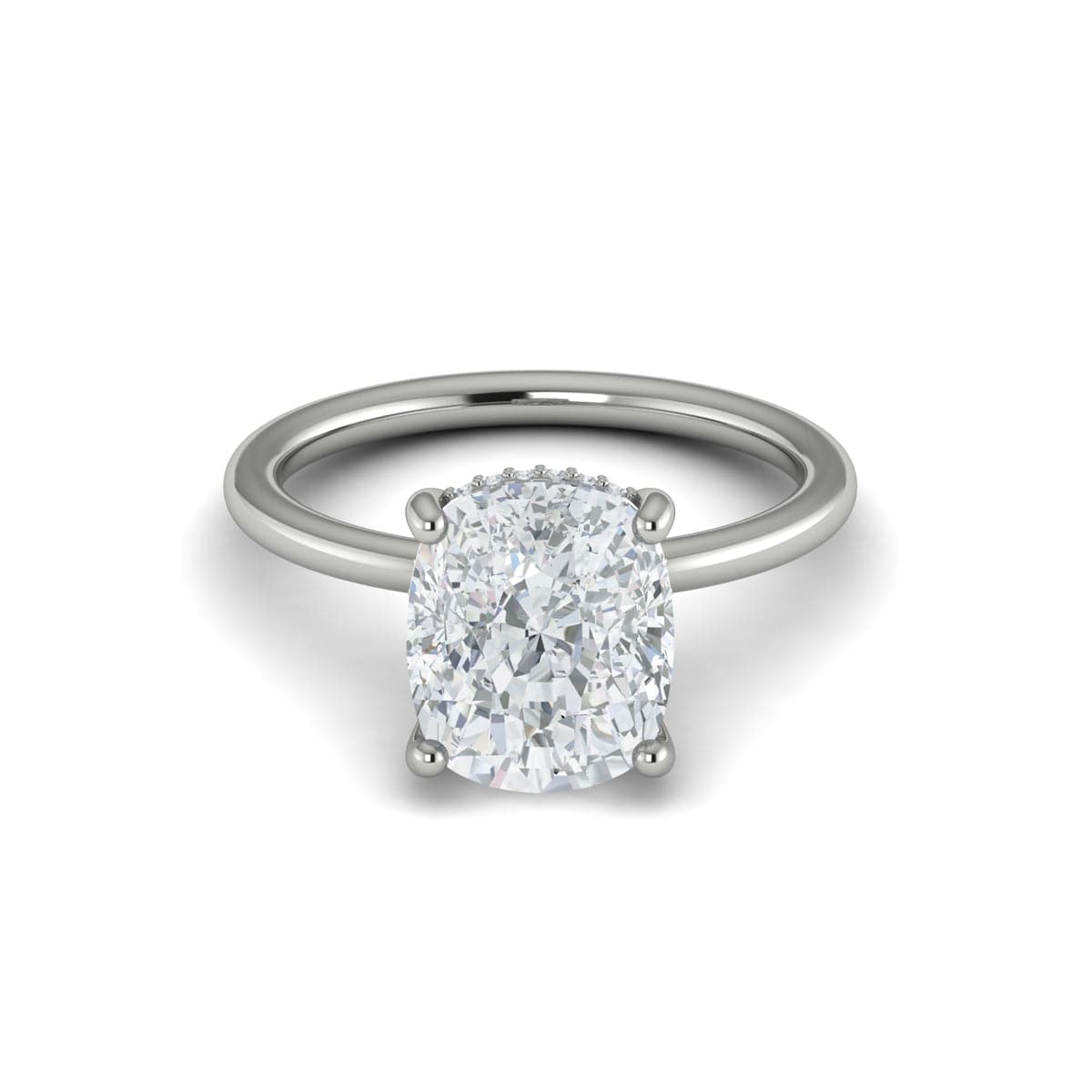 14K YG/WG 1.5 MM BAND SOLITAIRE ENGAGEMENT RING WITH UNDER HALO FEATURING 0.06TCW OF ROUND DIAMONDS.