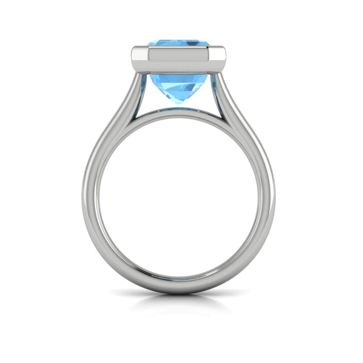 A modern Bezel-set Solitaire Diamond Engagement Ring, presented in a 14k white gold Cathedral mounting, exudes sophistication and elegance. Available in white, rose, and yellow gold.