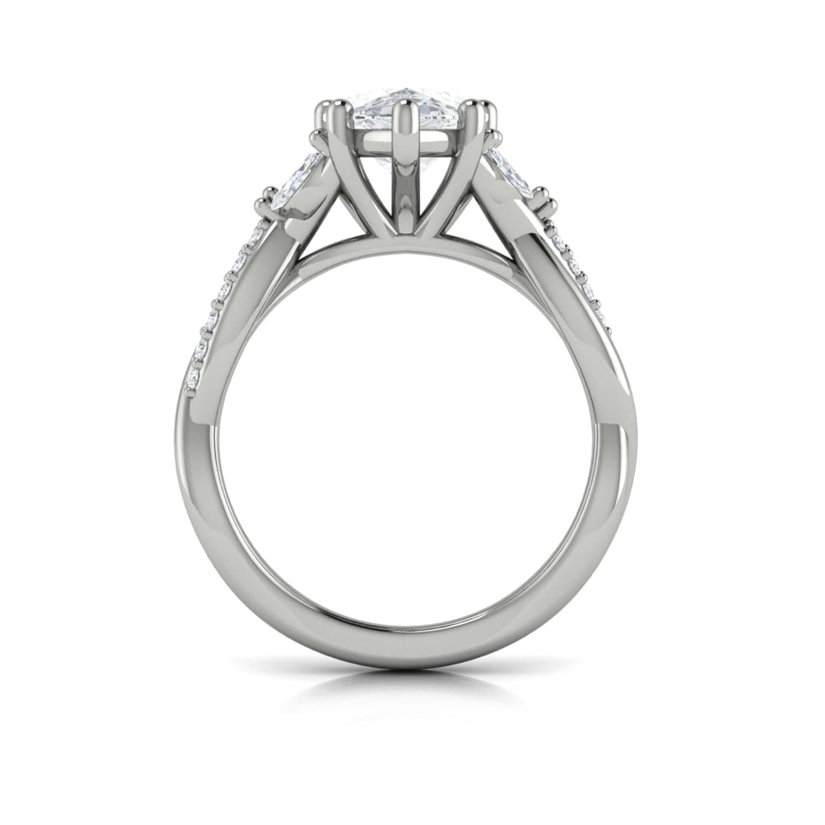 Vintage Style Pear Shaped Diamond Engagement Ring with a Diamond Twist Band. 14K White Gold CATHEDRAL Band SET WITH MARQUISE AND ROUND BRILLIANT DIAMONDS. THE COMBINED TOTAL Diamond weight is 0.33CTW. This style is available in white, rose, or yellow gold. Available in Lab grown. Contact store for lab pricing. -C003707