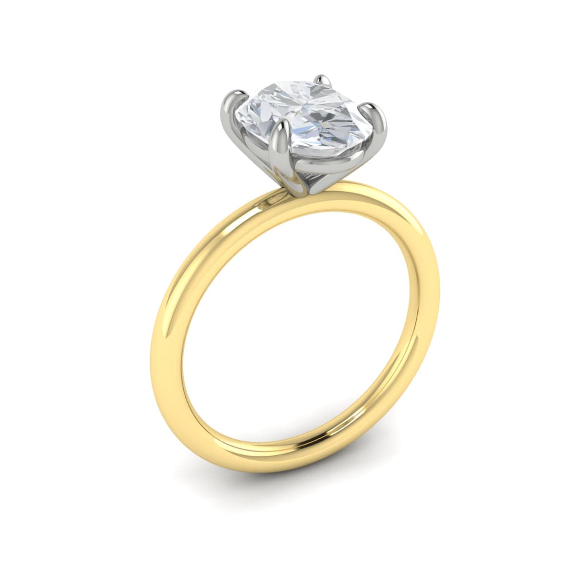 Best Seller! Oval Solitaire Diamond Engagement Ring in 14K Yellow gold with a 1.8mm band. The main stone is set in a 14k white gold basket to minimize the appearance of the prongs. This style is available in all diamond shapes and in yellow, white, or rose gold. -C003742