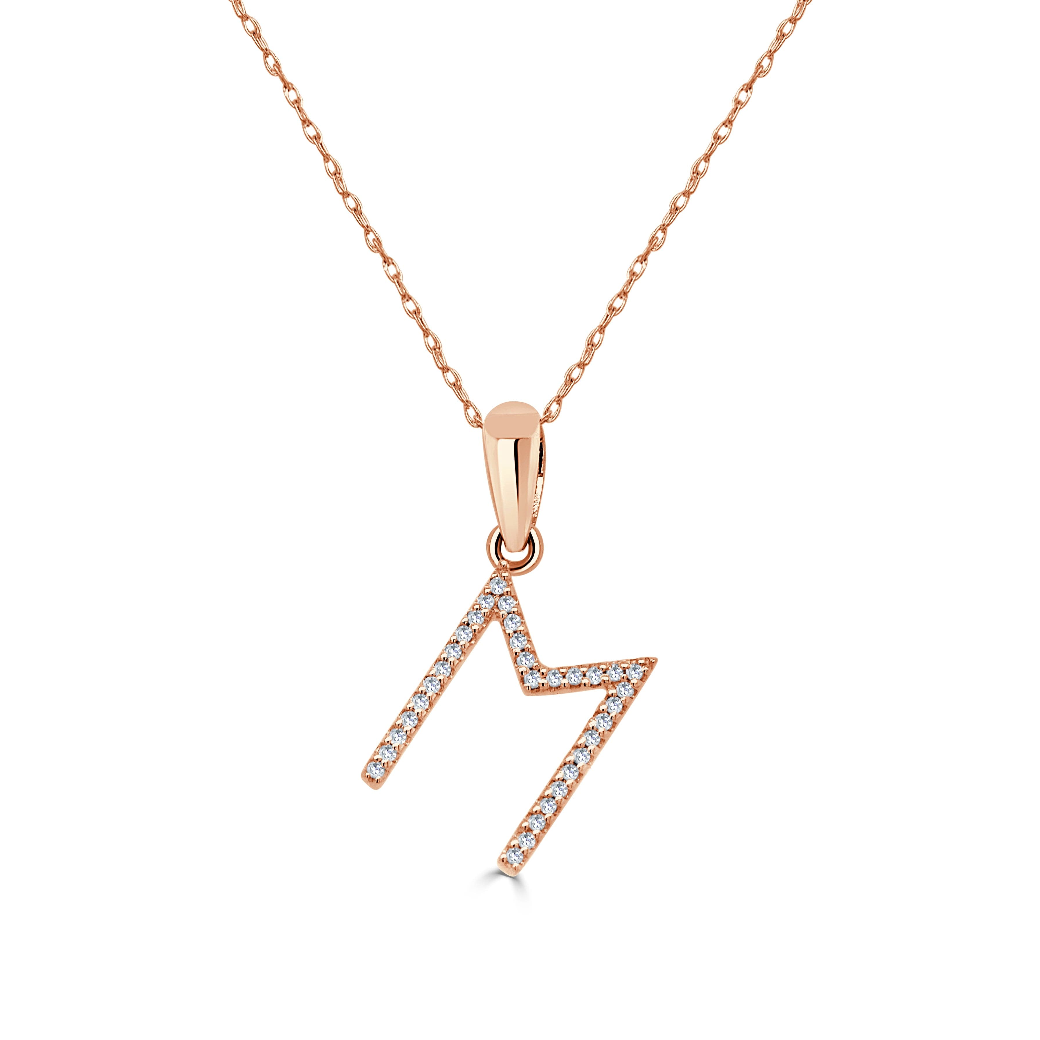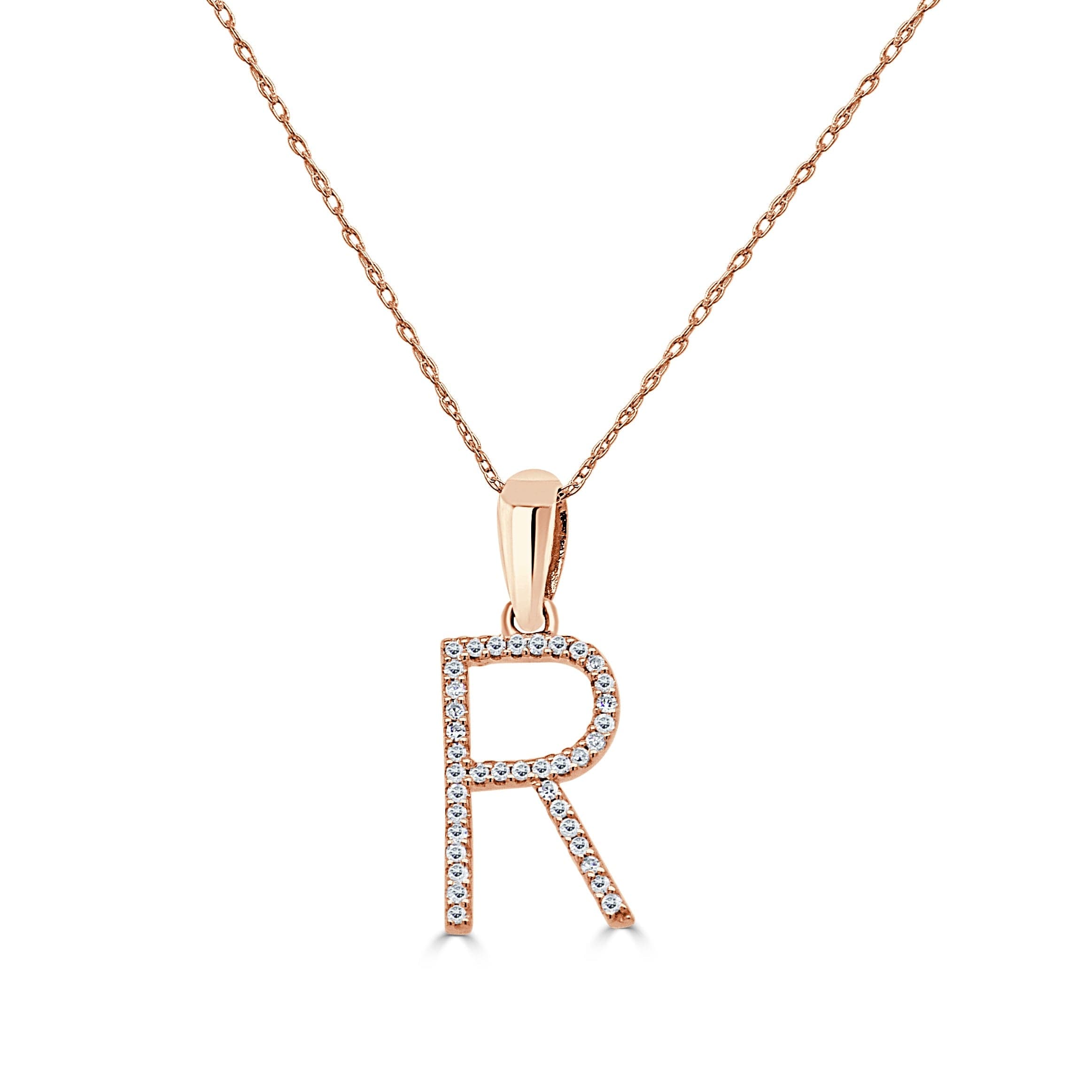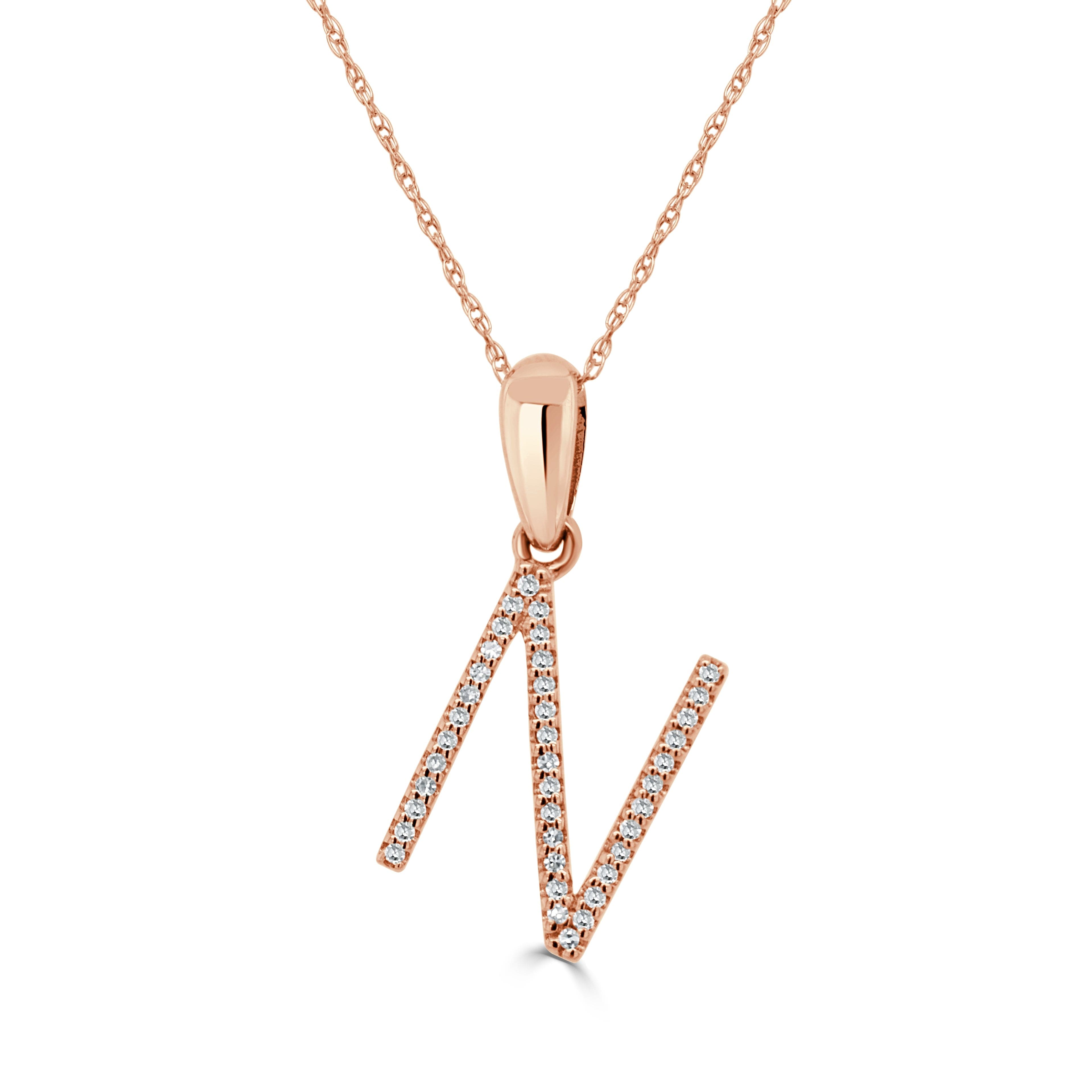 14K Diamond Large Rose Gold Initial Pendent with 18” Rope Chain