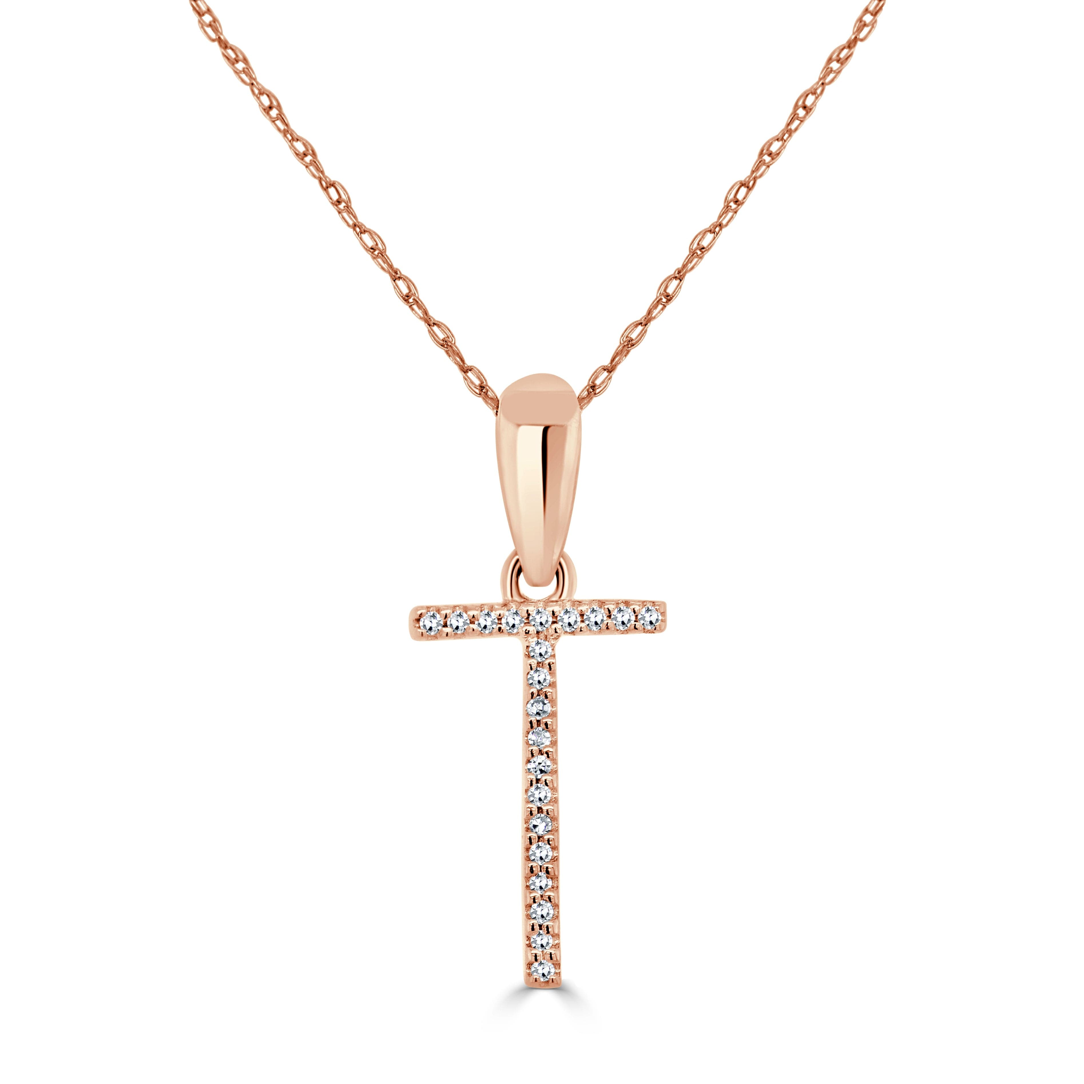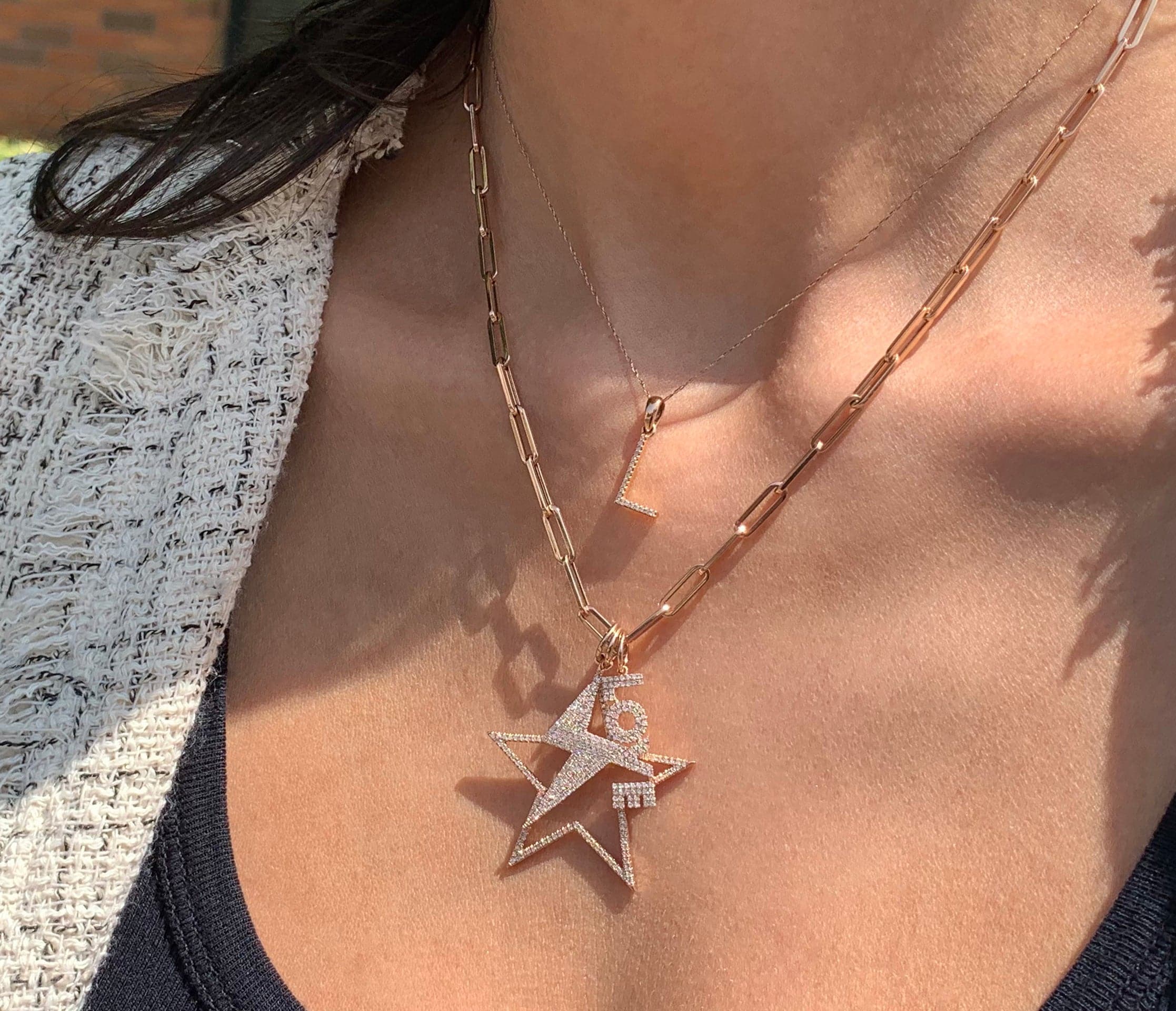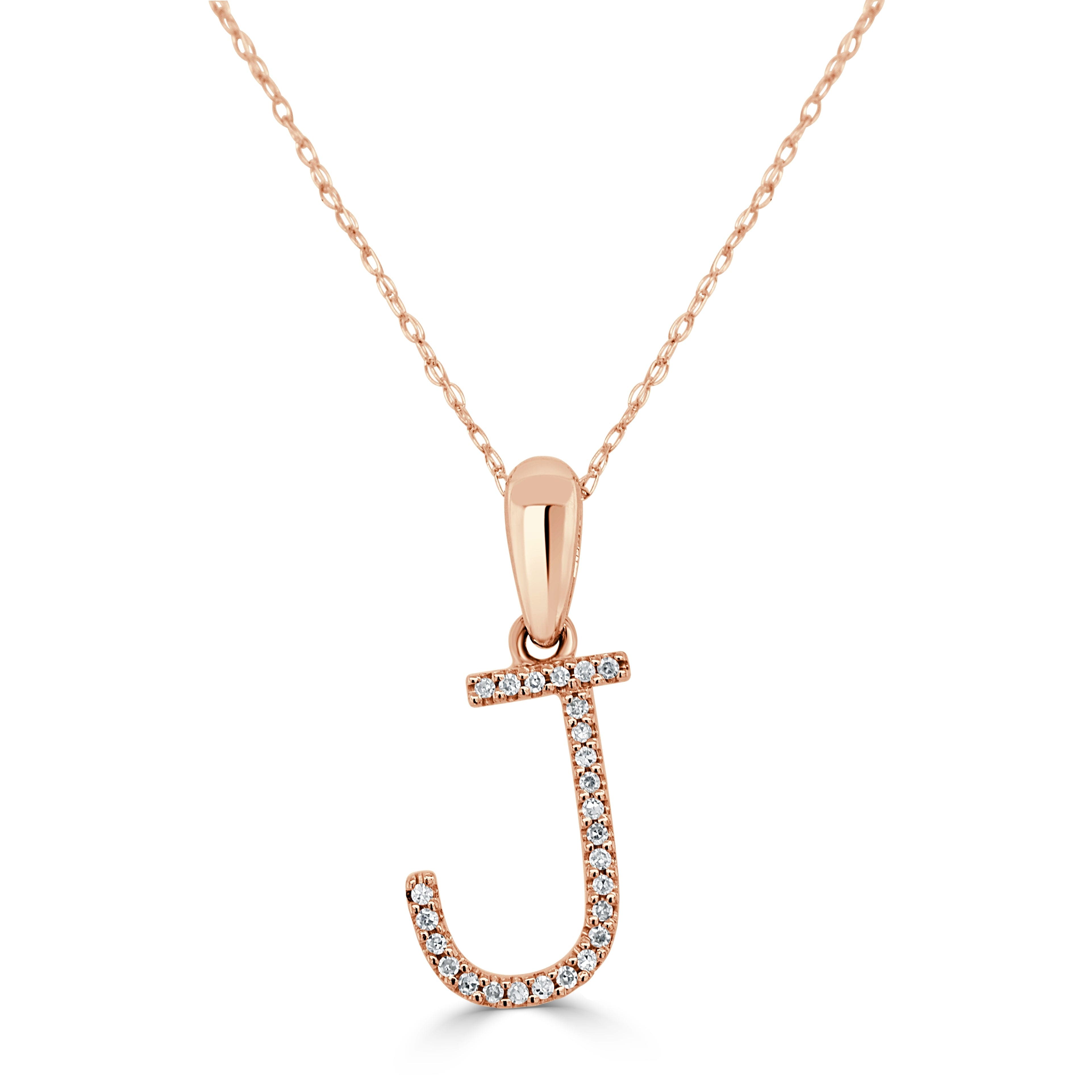 14K Diamond Large Rose Gold Initial Pendent with 18” Rope Chain
