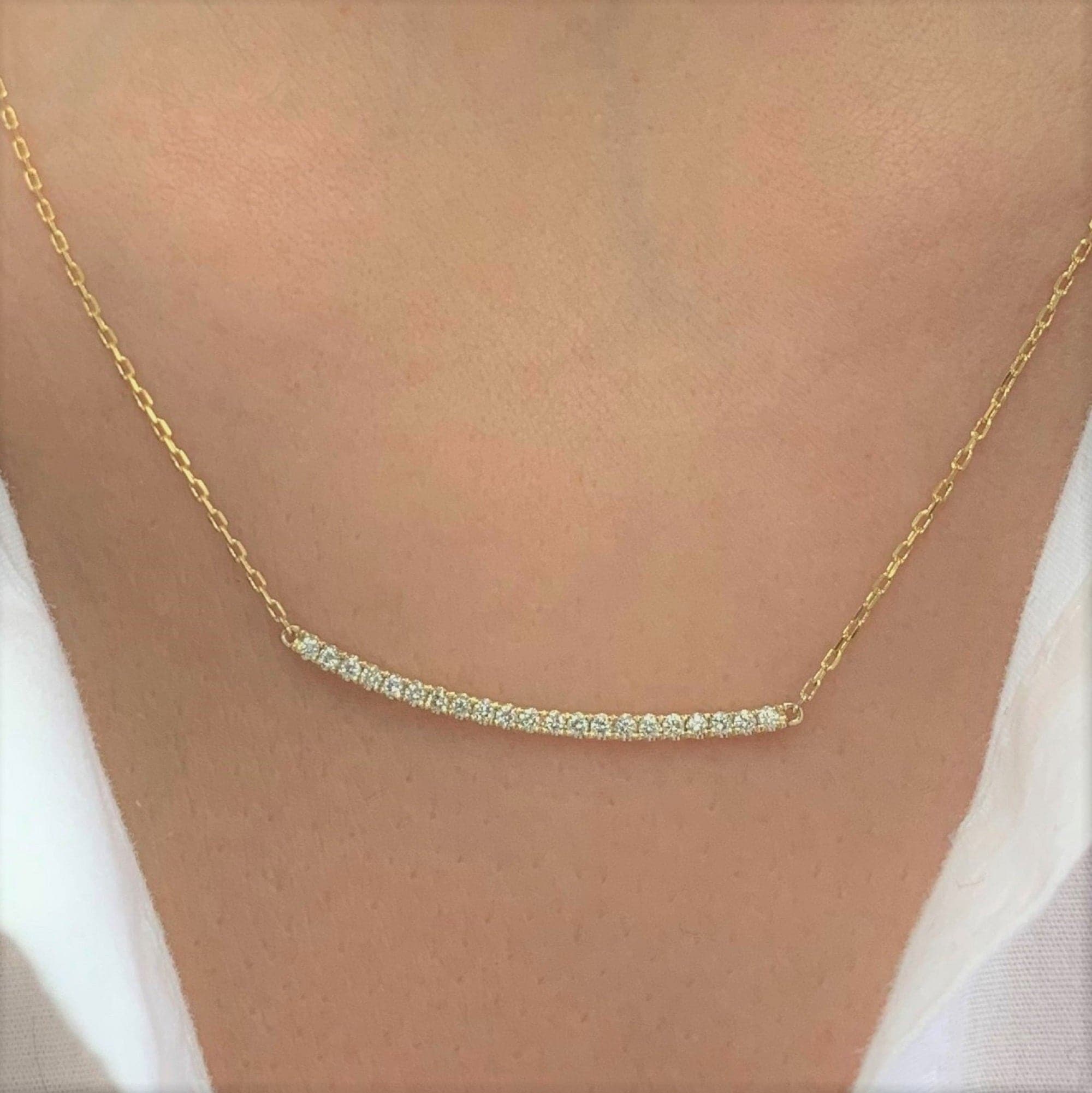 14k Gold & Diamond Bar Necklace
