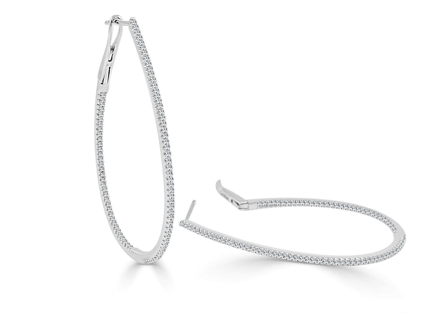 14k Gold & Diamond Skinny Hoop Earrings 1-3/4"