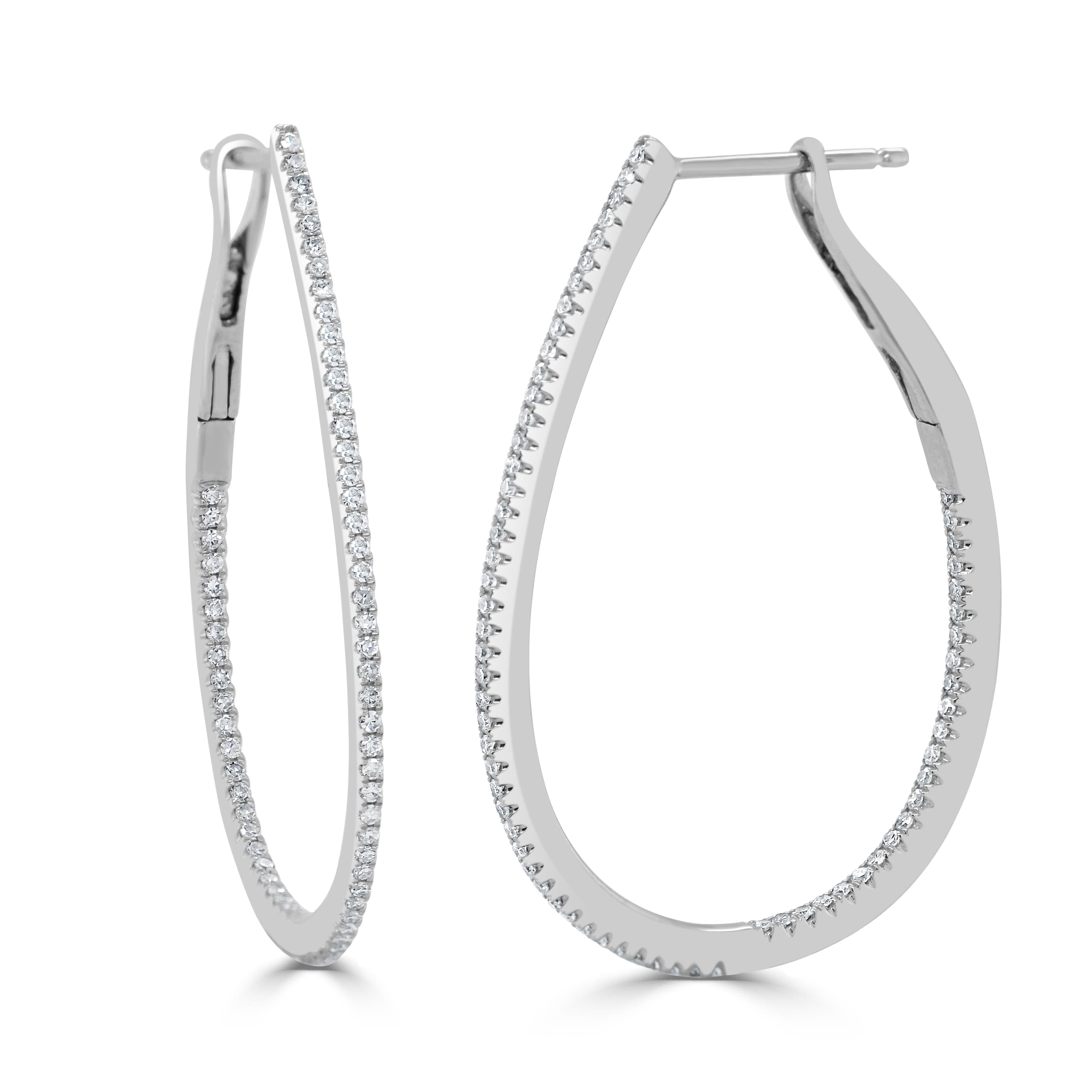 14K GOLD DIAMOND PEAR SHAPED INSIDE OUT HOOPS