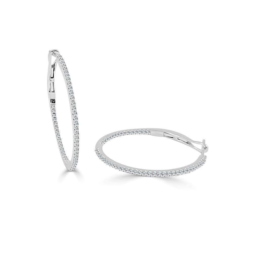 14k Gold & Diamond Skinny Hoop Earrings - 1"