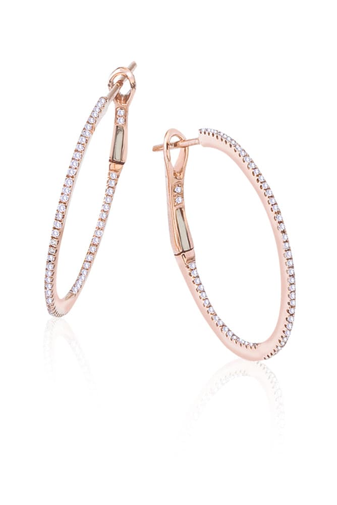 14k Gold & Diamond Skinny Hoop Earrings 1.25"