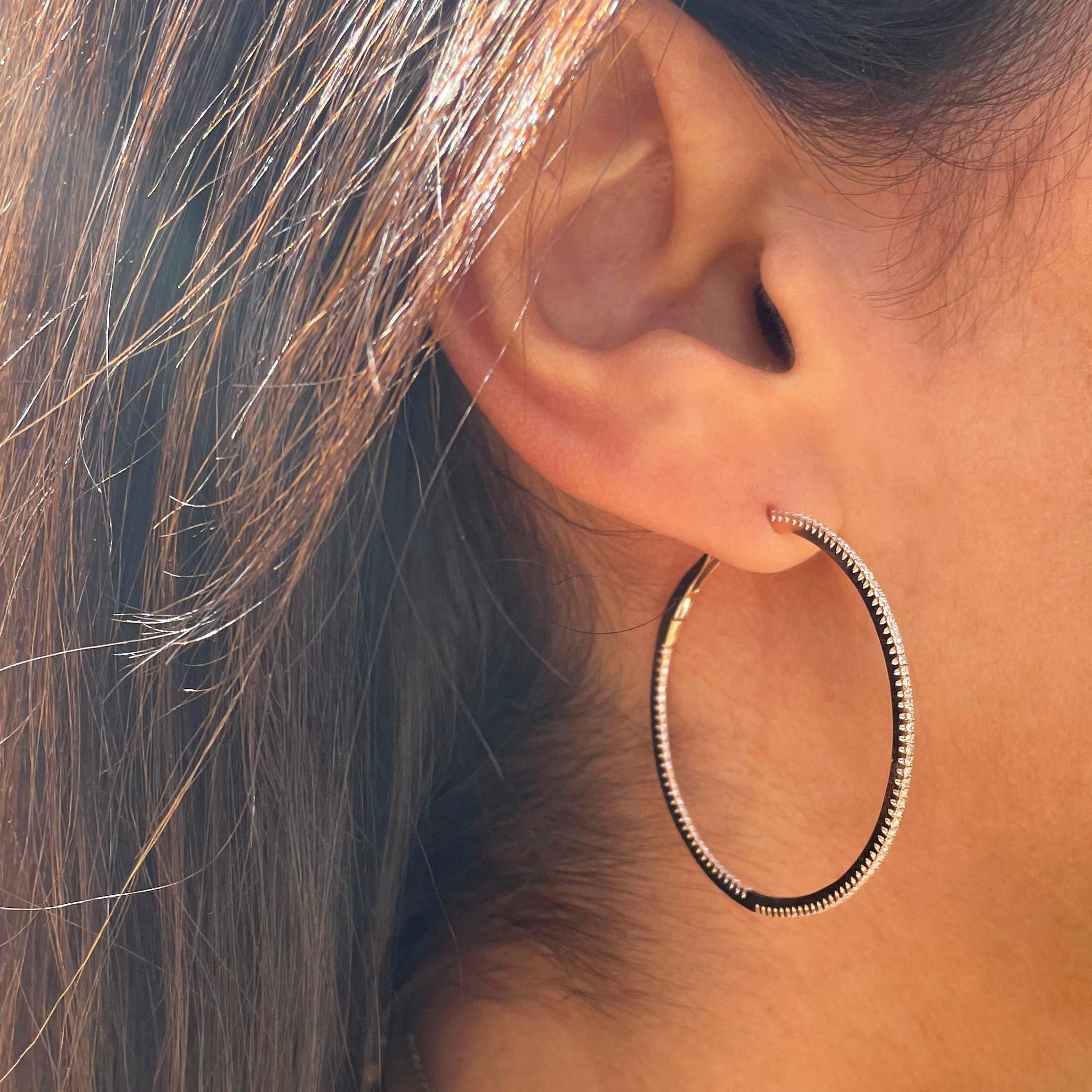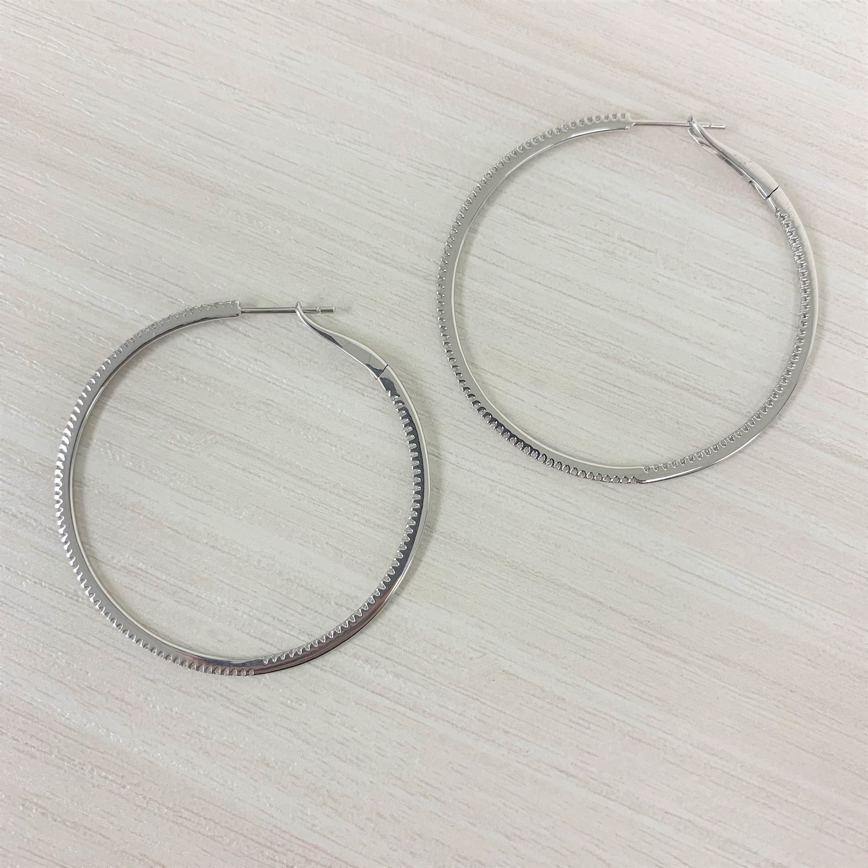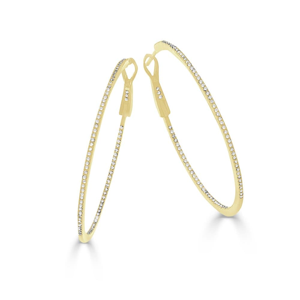 14k Gold & Diamond Skinny Hoop Earrings 1-3/4"