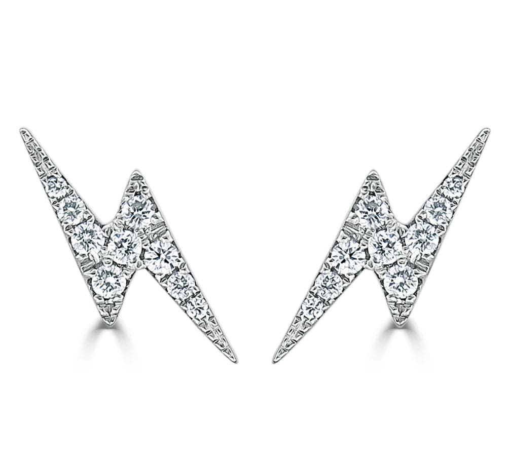 14k Gold & Diamond Lightning Bolt Stud Earrings